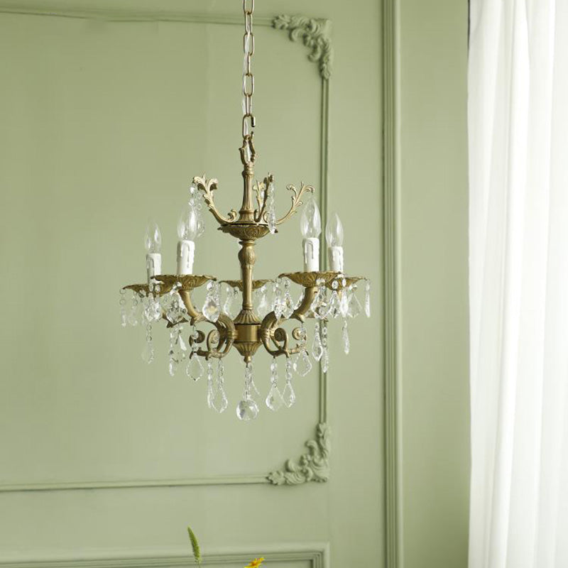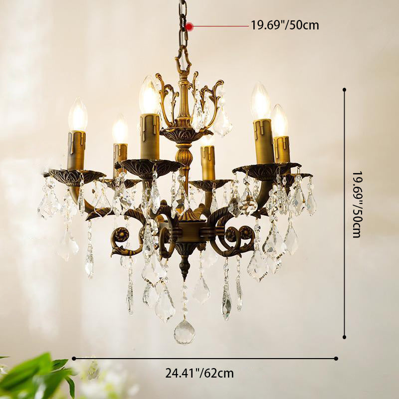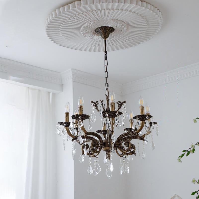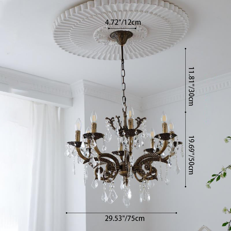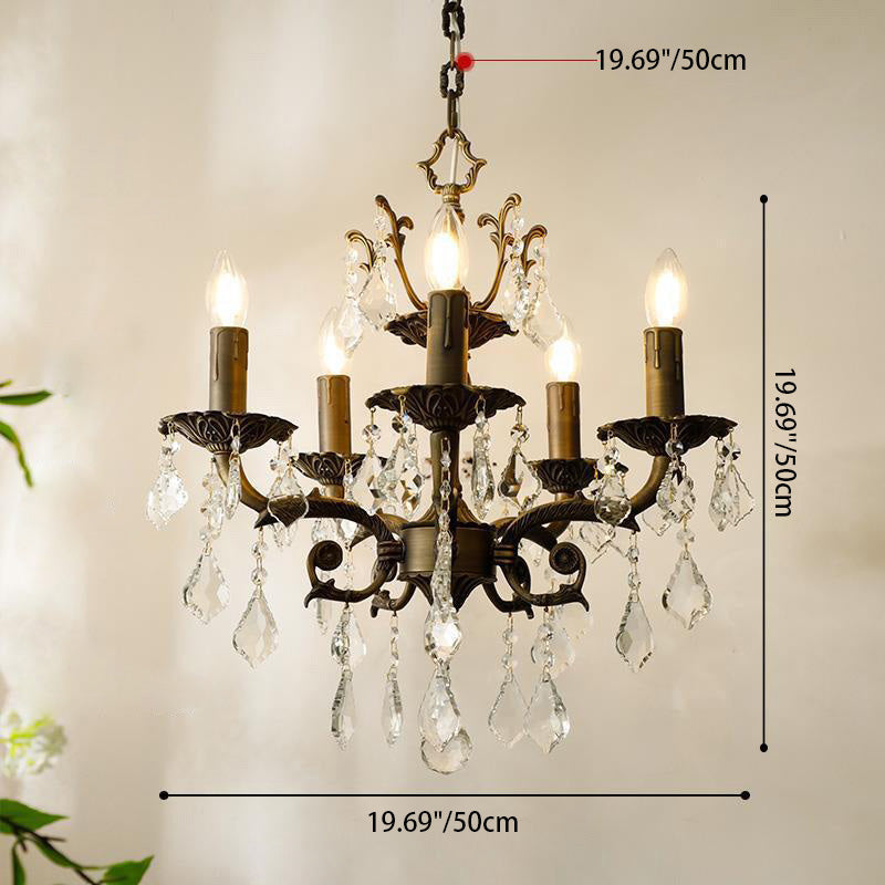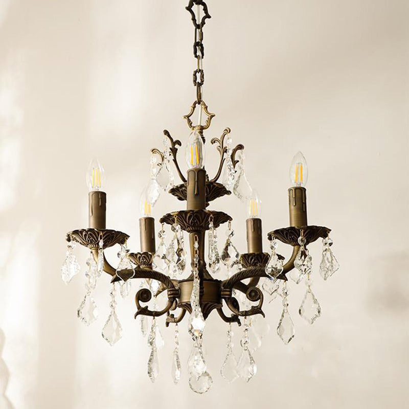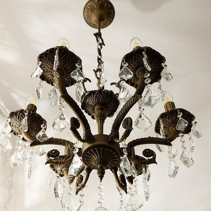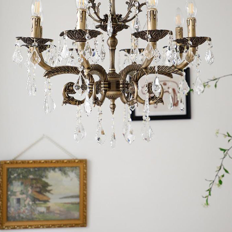 寝室用、伝統的なヴィンテージの小枝キャンドル型銅クリスタル5/6/8灯シャンデリア
