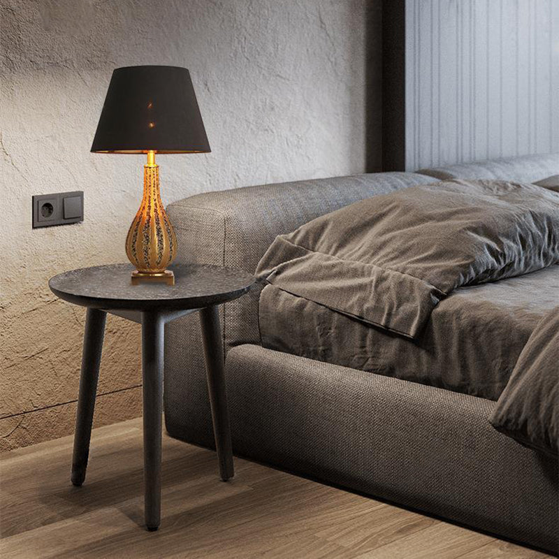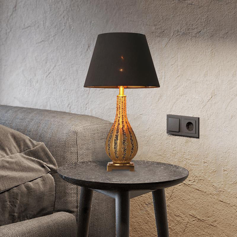 Traditional Vintage Vase Base Trapezoidal Ceramic Fabric 1-Light Table Lamp For Bedroom