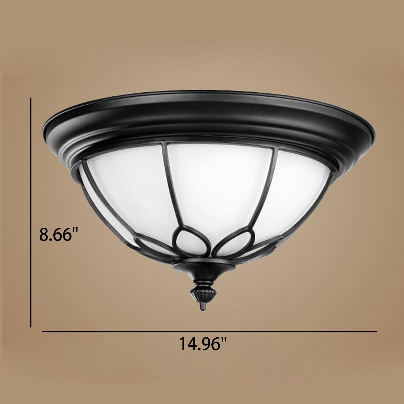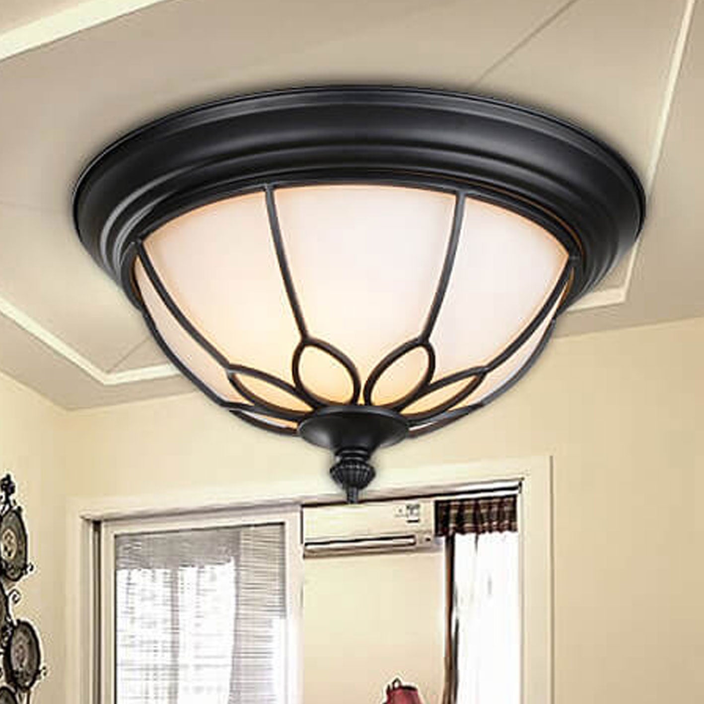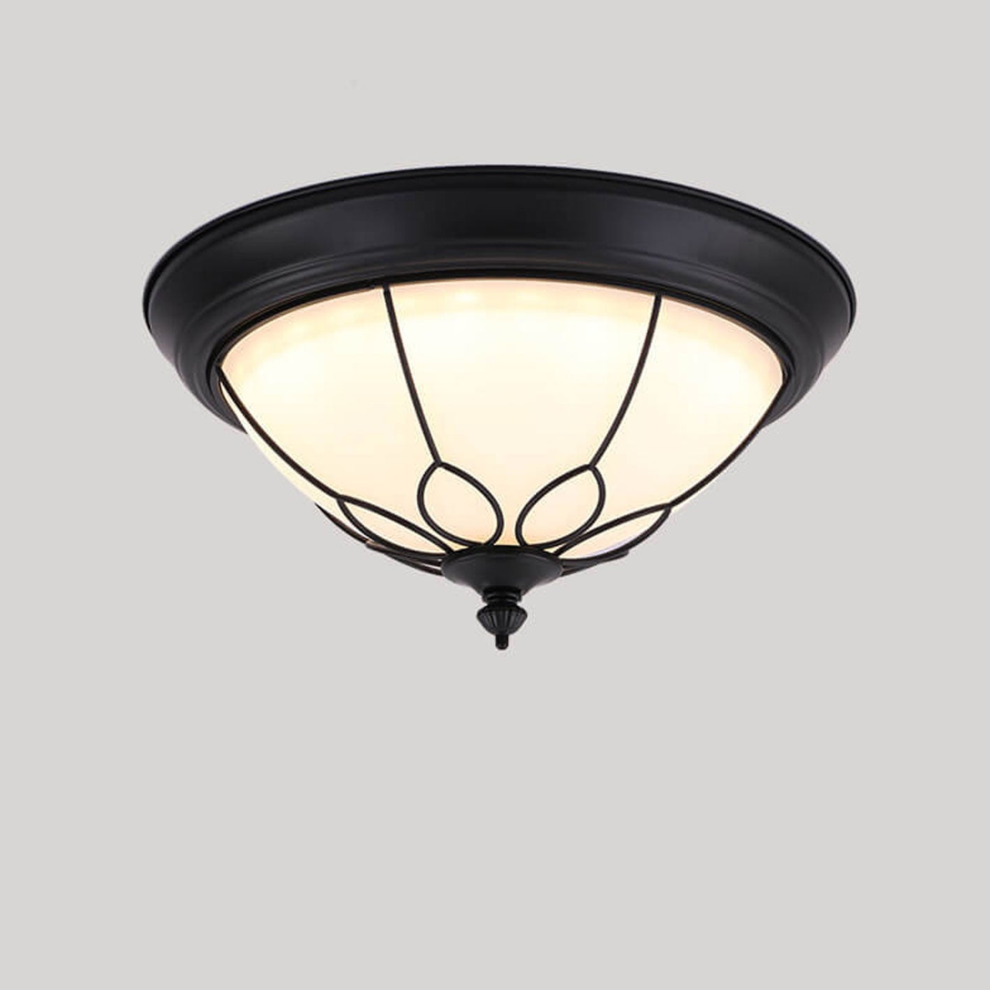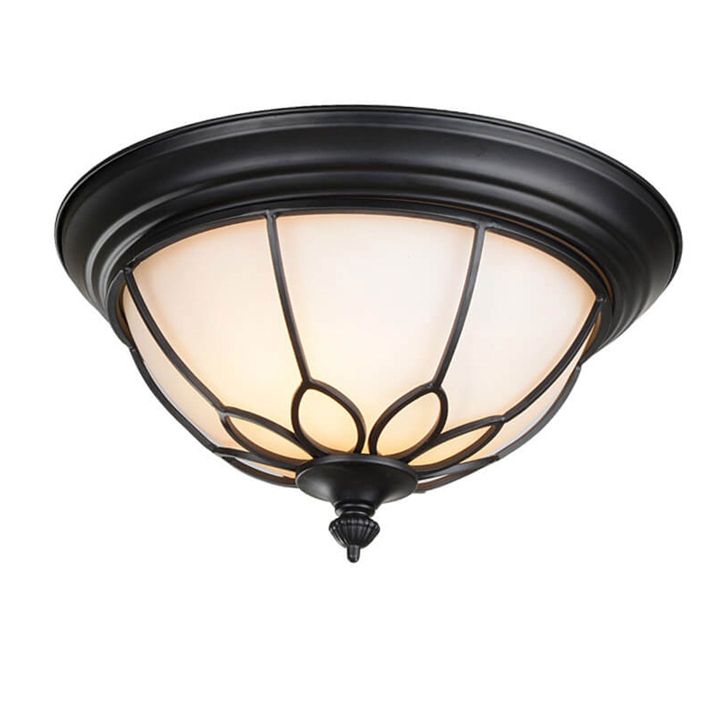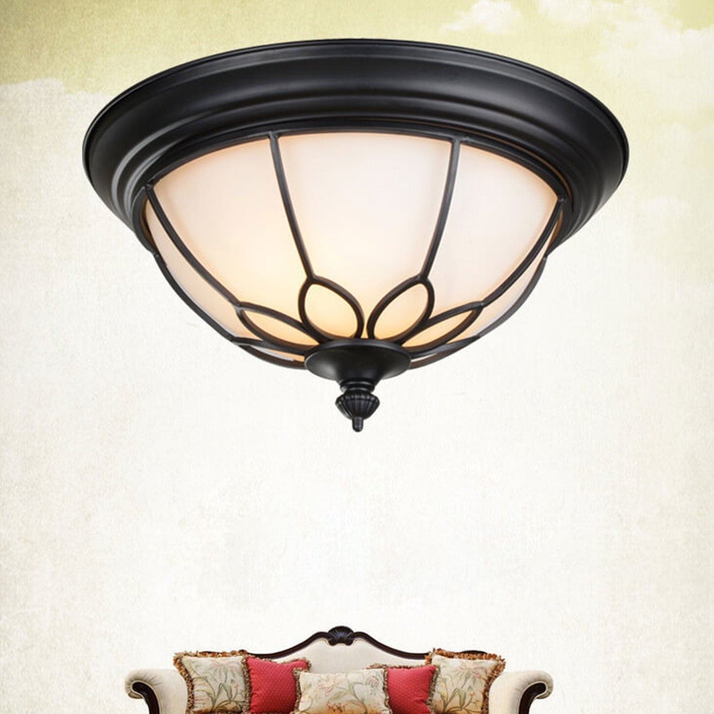 ヴィンテージアメリカンアイアンフロストガラスボウルLEDフラッシュマウントシーリングライト