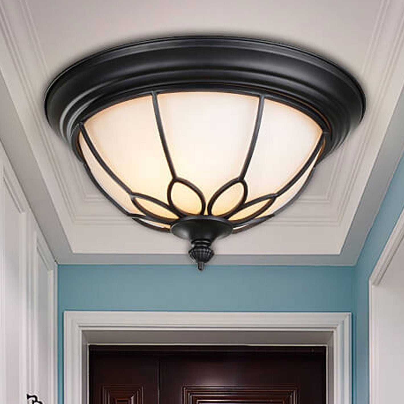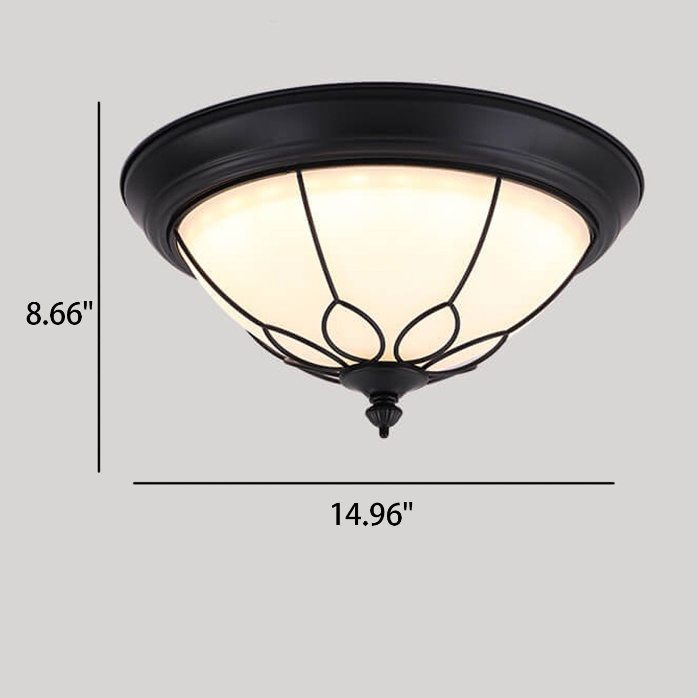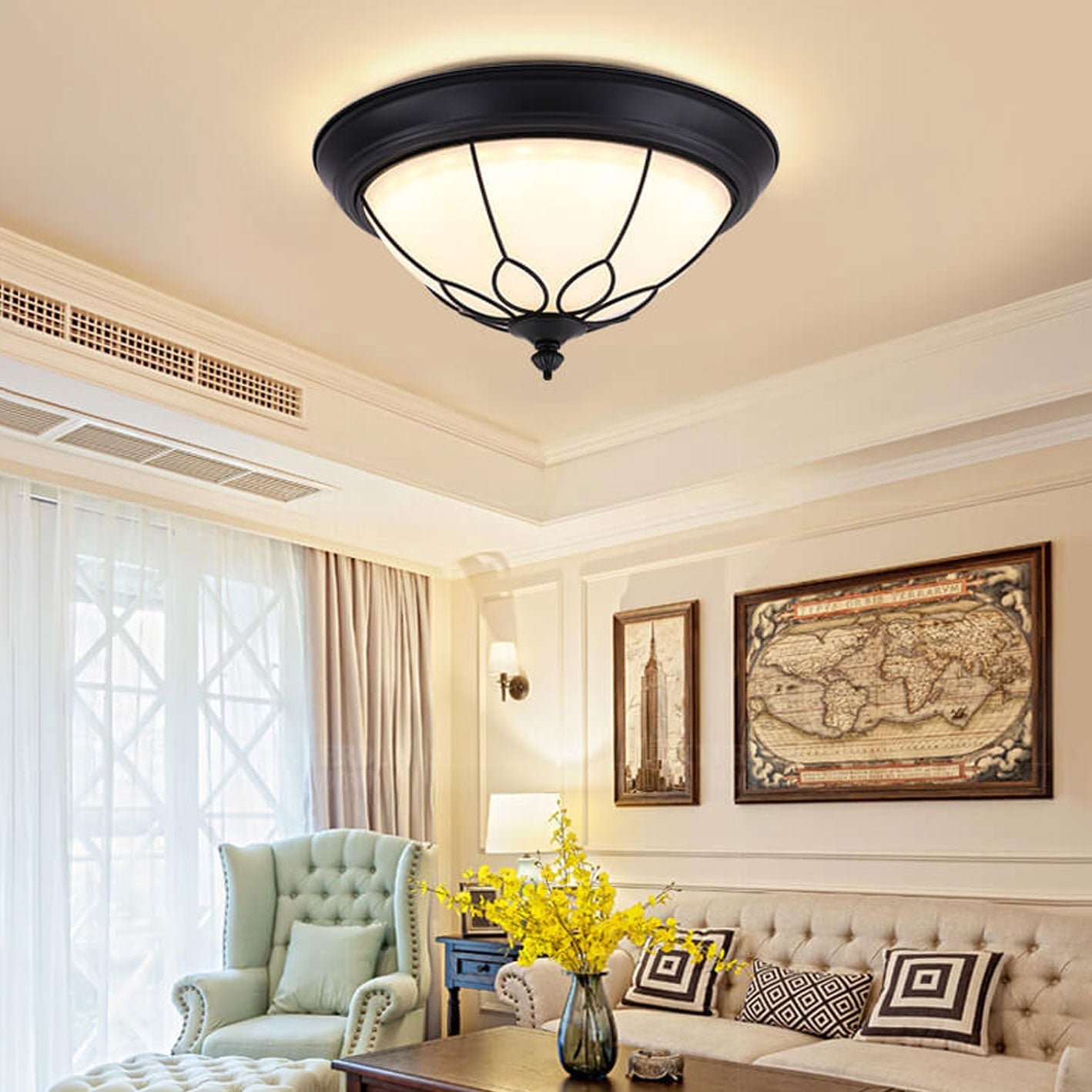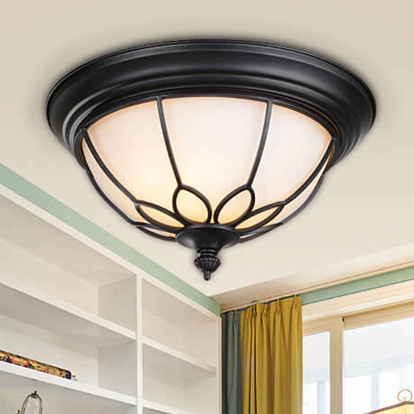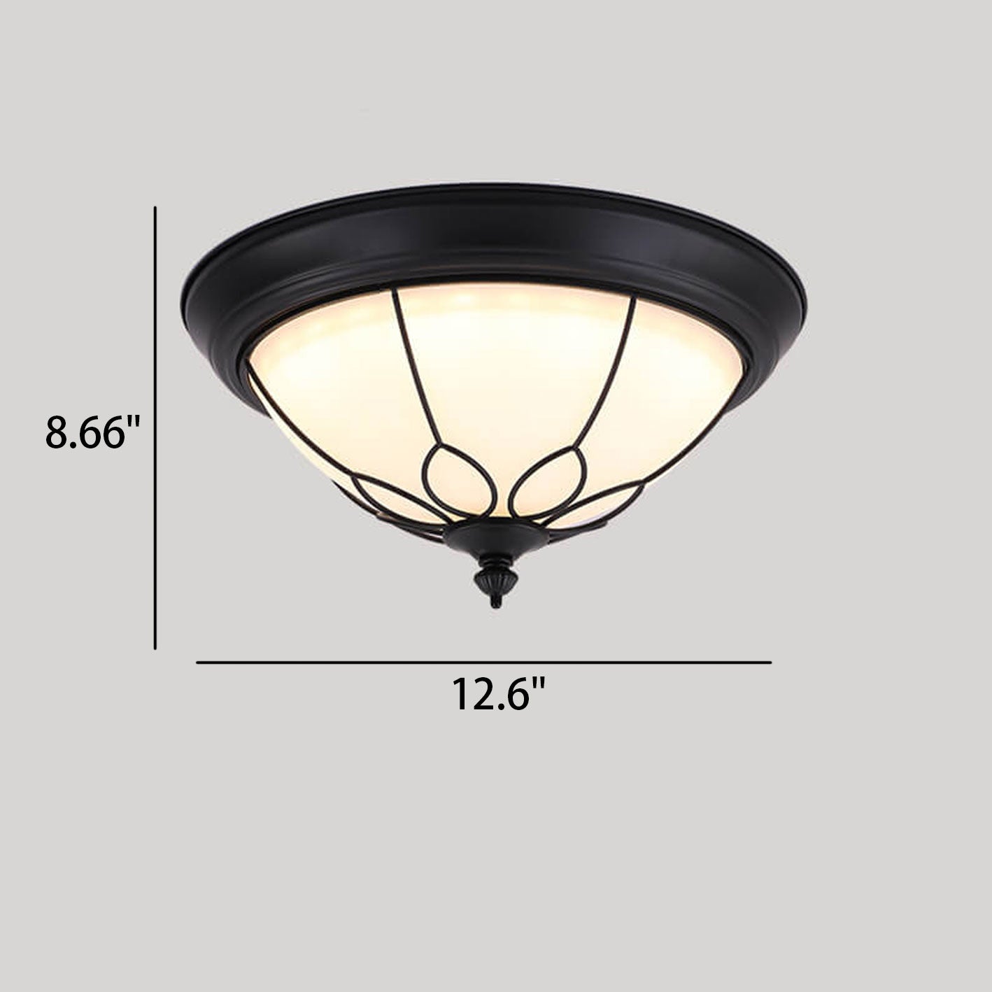 ヴィンテージアメリカンアイアンフロストガラスボウルLEDフラッシュマウントシーリングライト