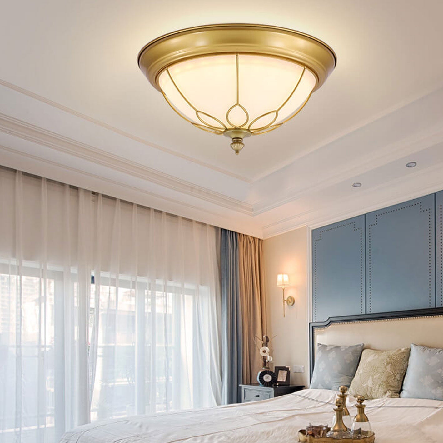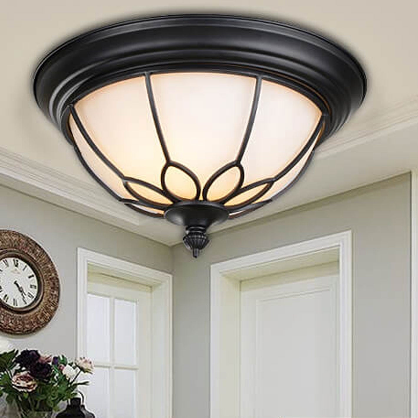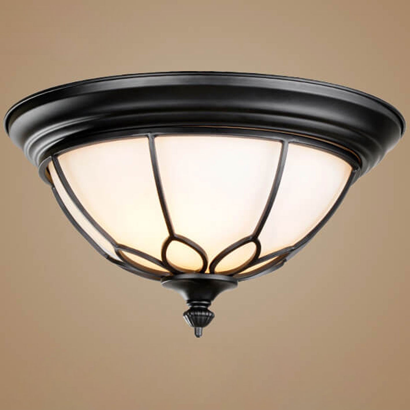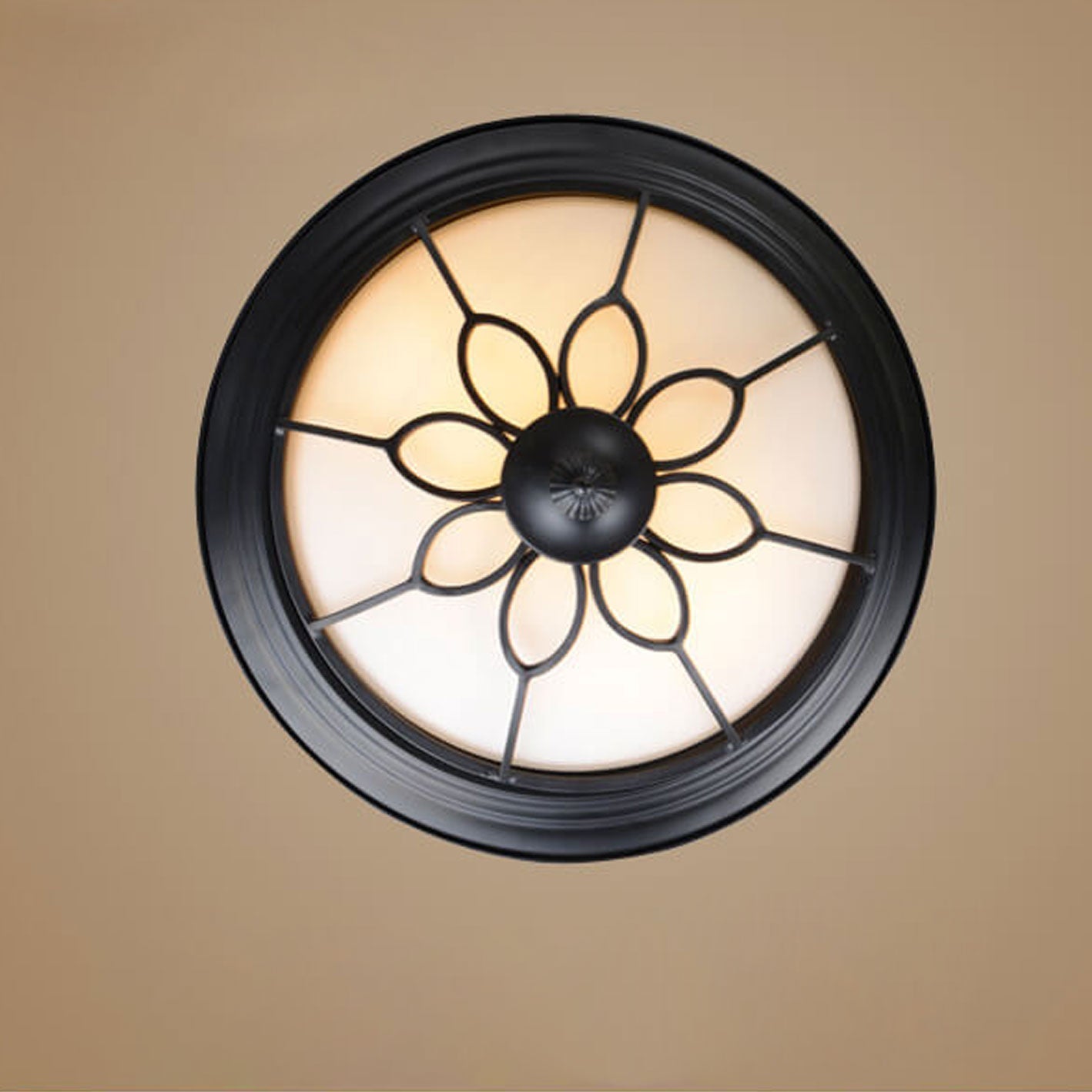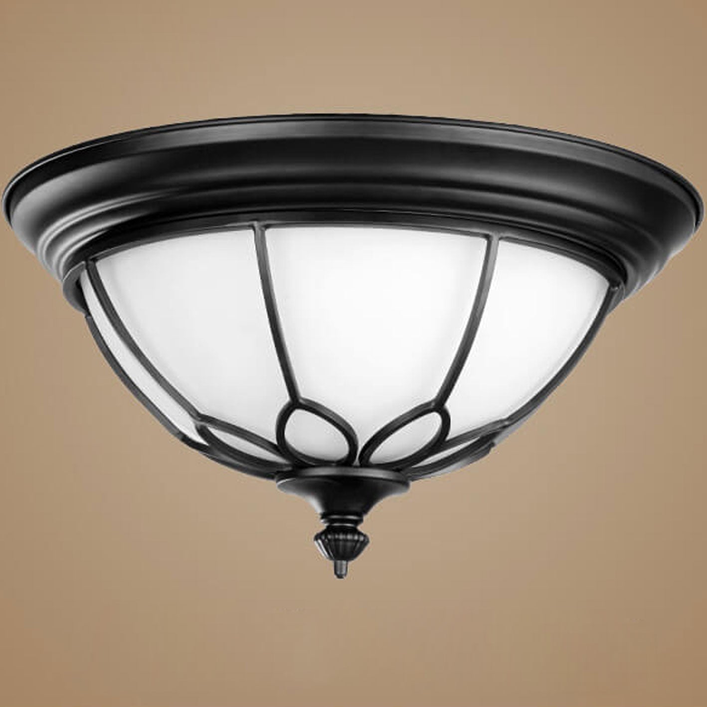 ヴィンテージアメリカンアイアンフロストガラスボウルLEDフラッシュマウントシーリングライト