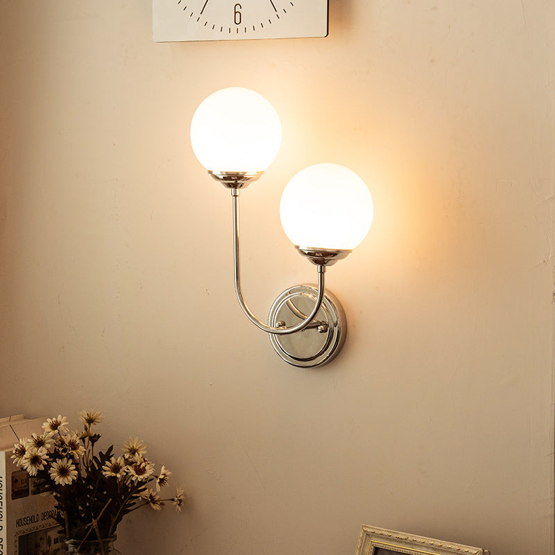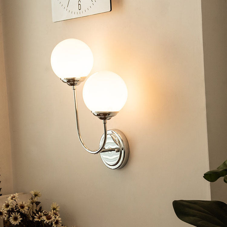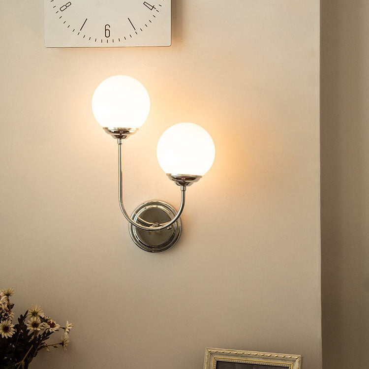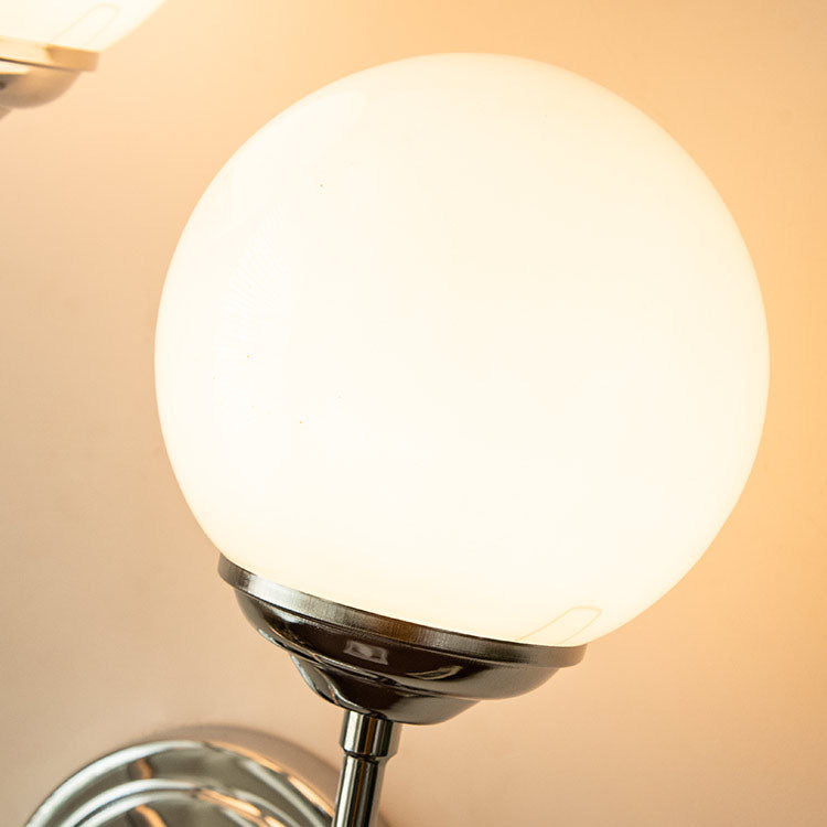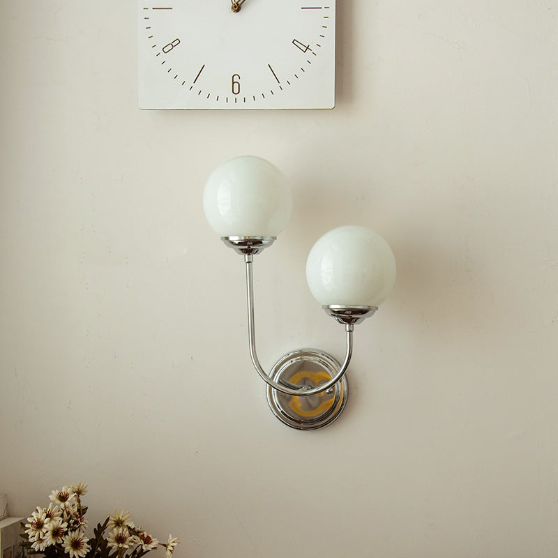 ヴィンテージクロームアイアンガラスボール2灯壁取り付け用燭台ランプ