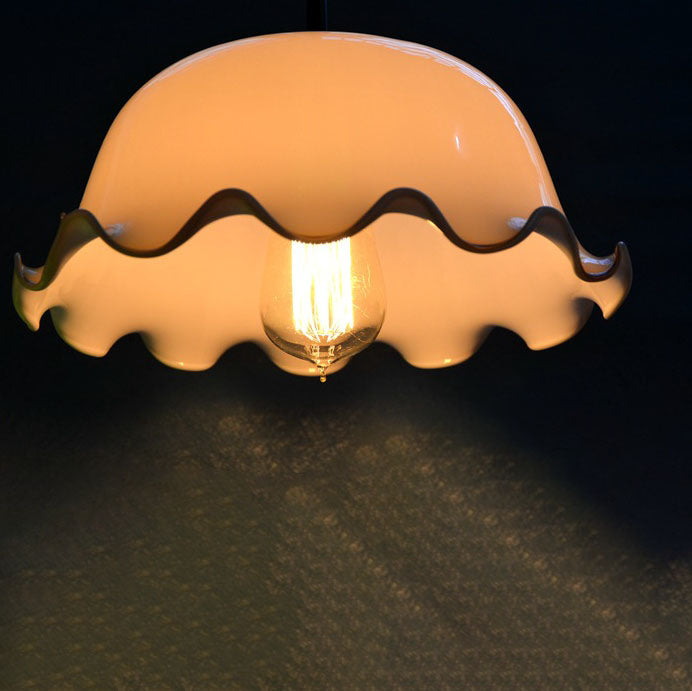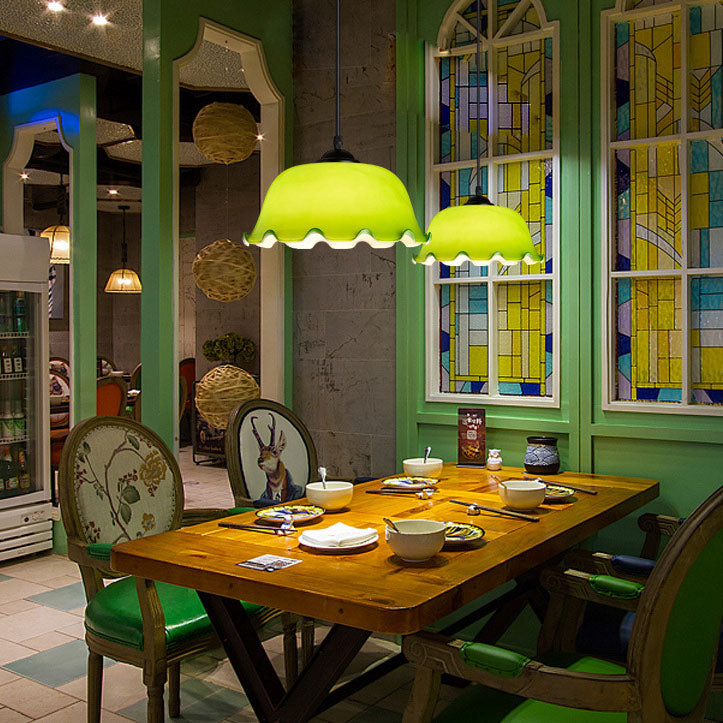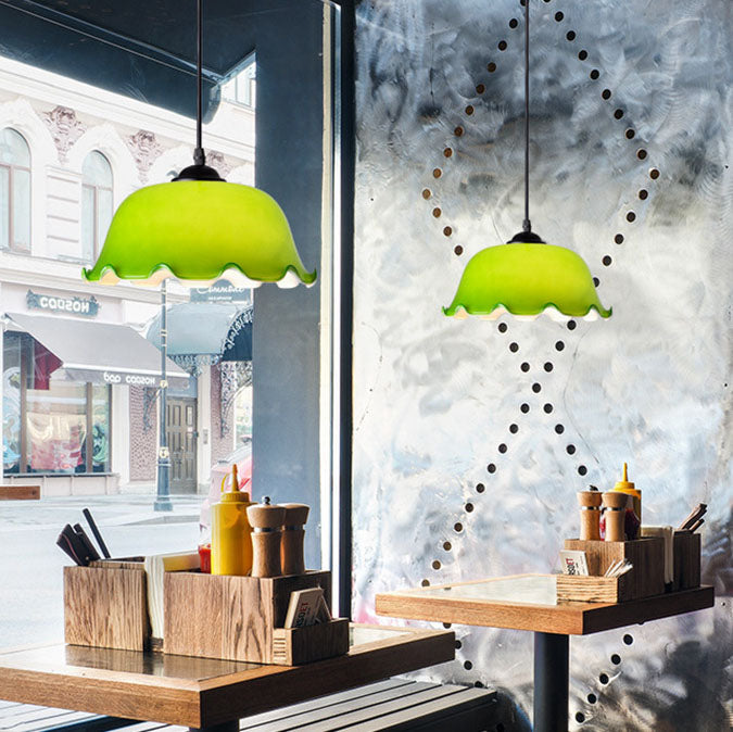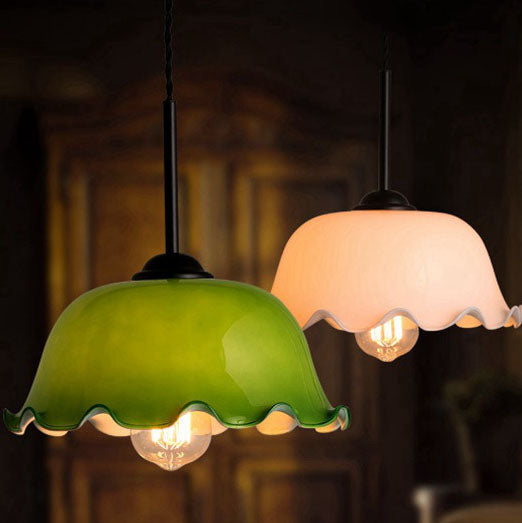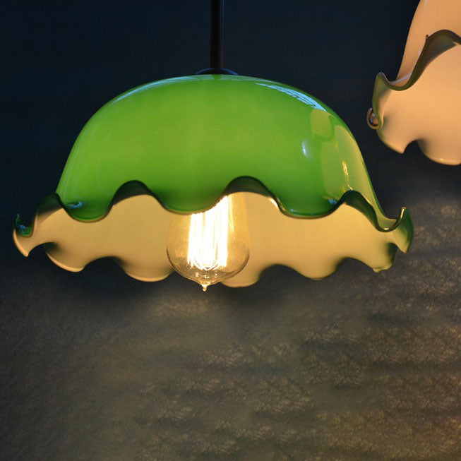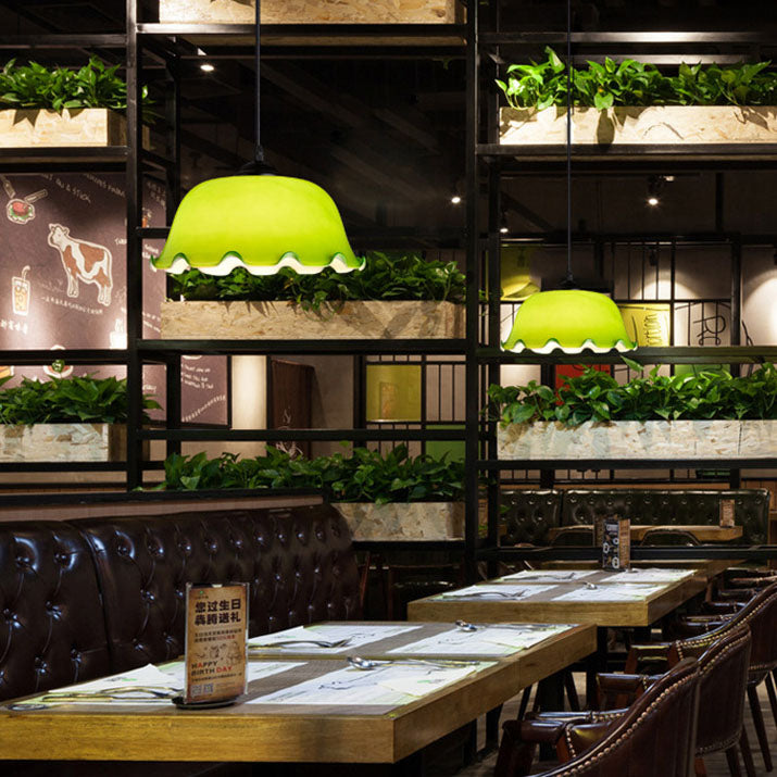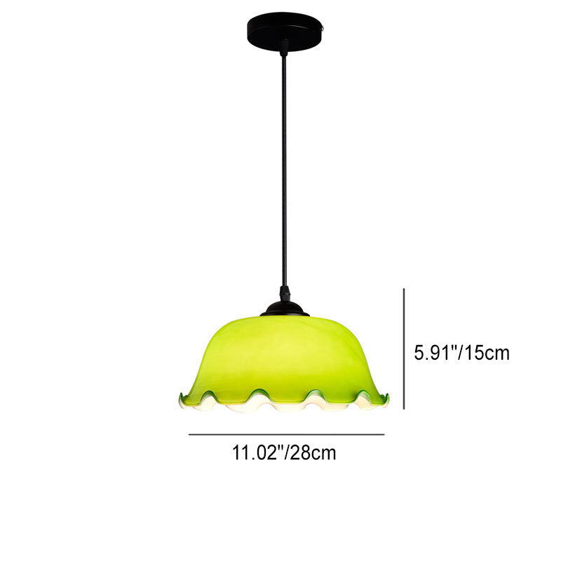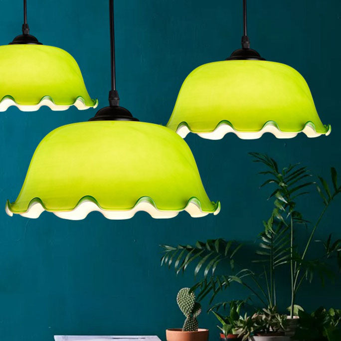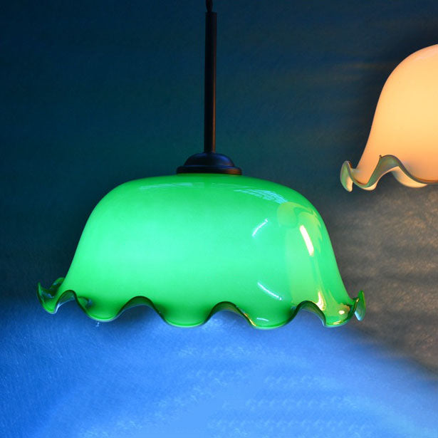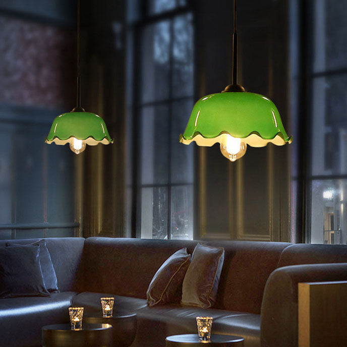 ヴィンテージ エメラルドグリーン ロールエッジガラス ドーム 1灯ペンダントライト
