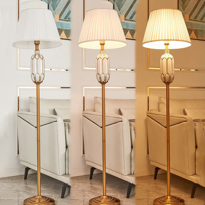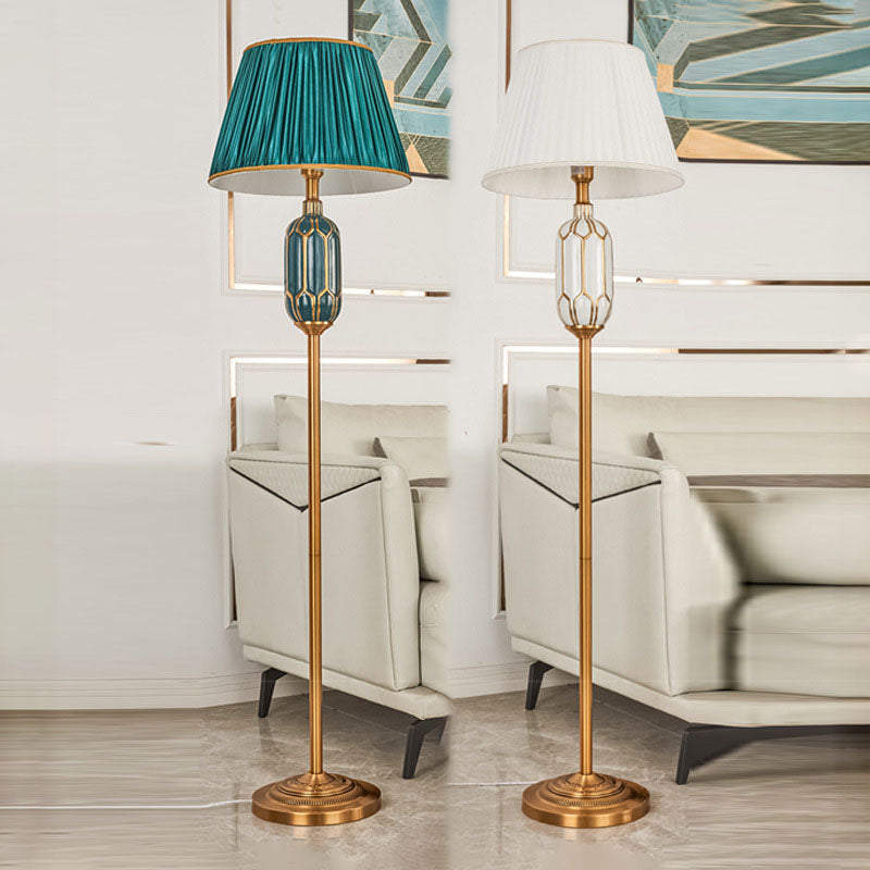 ヴィンテージヨーロピアンプリーツファブリックシェード セラミックハードウェアベース 1灯スタンドフロアランプ