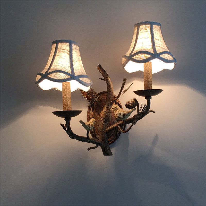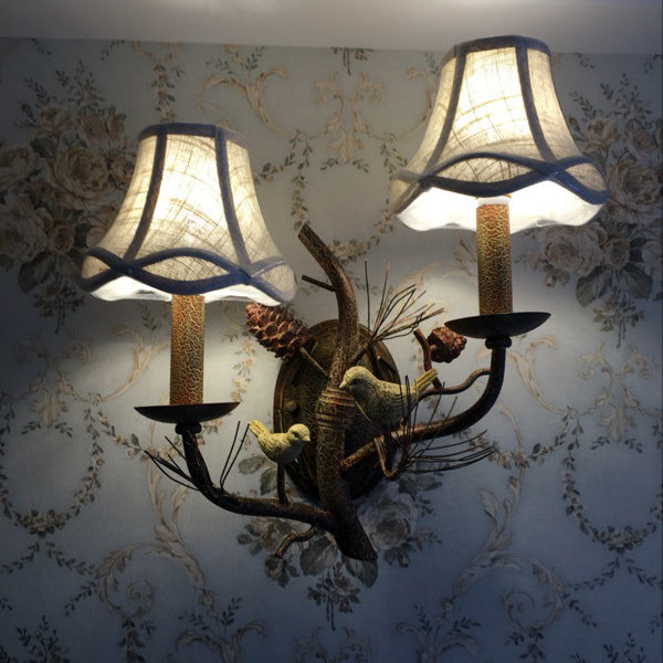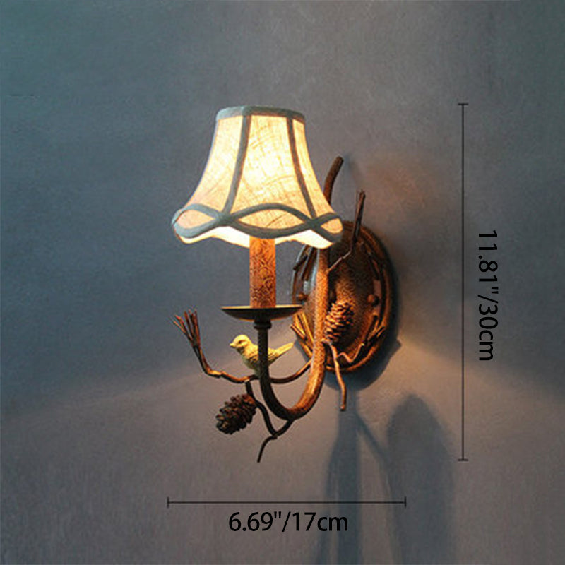 ヴィンテージファブリックバード松ぼっくり樹脂1/2ライトウォールスコンスランプ