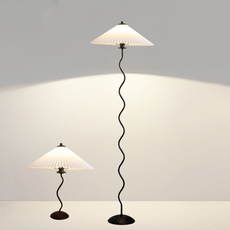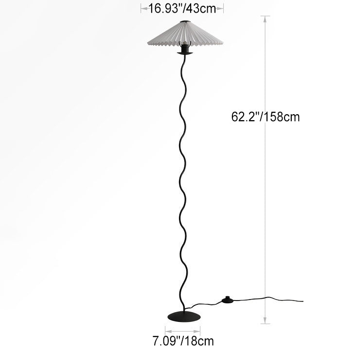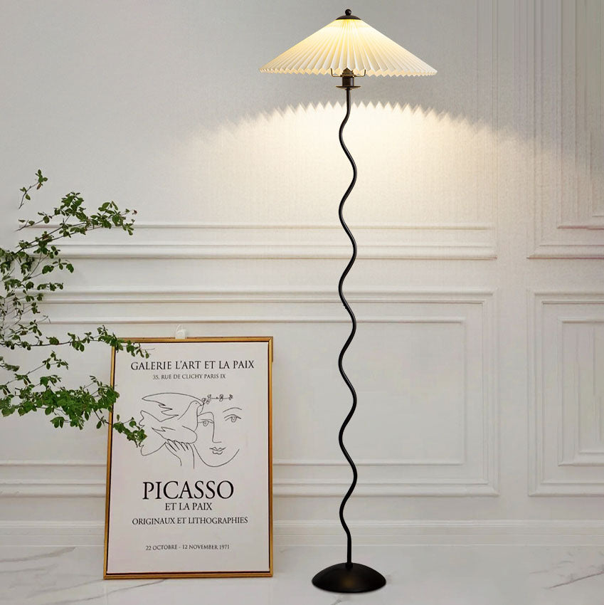 ヴィンテージファブリックプリーツシェード1灯スタンドフロアランプ