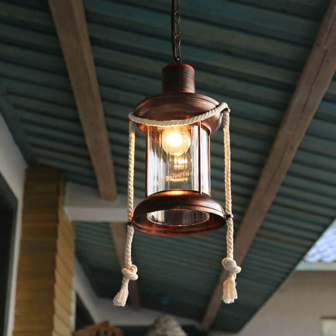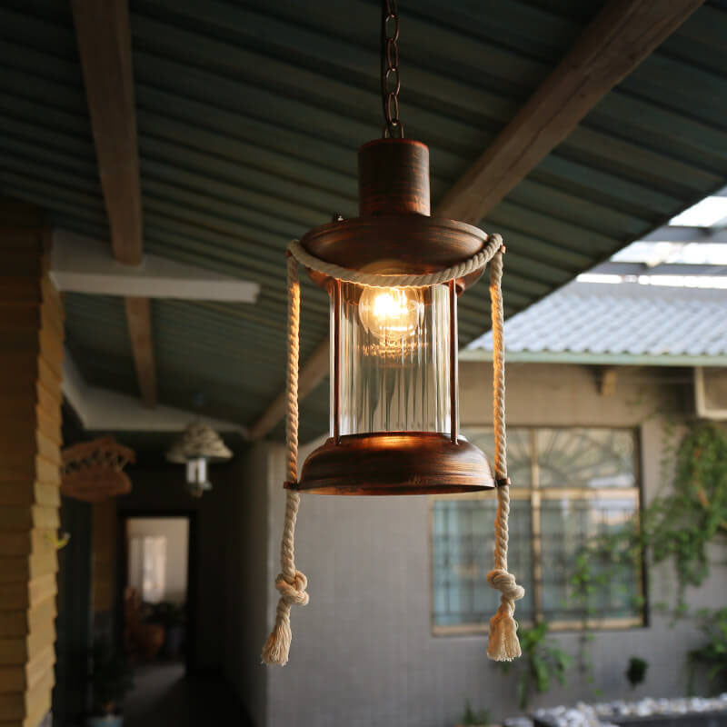ヴィンテージ麻ロープランタンオイルランプアイアンペンダントライト