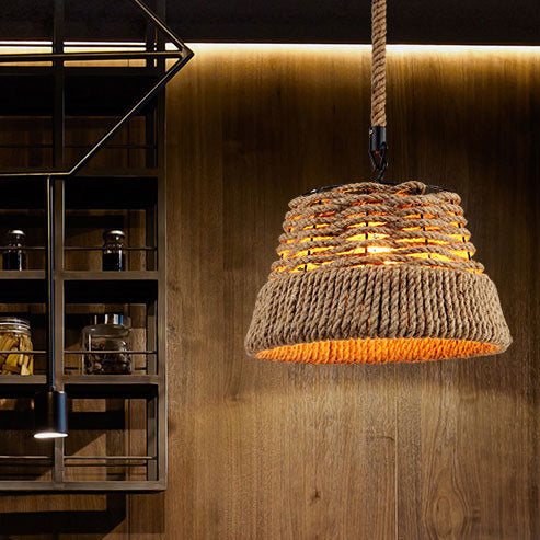 ヴィンテージ インダストリアル ヘンプロープ コーン ストローハット 1灯ペンダントライト