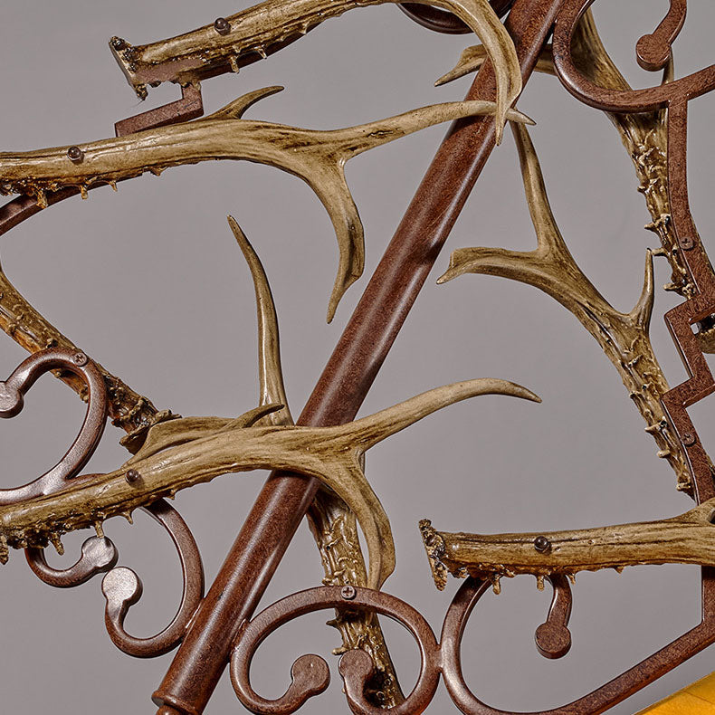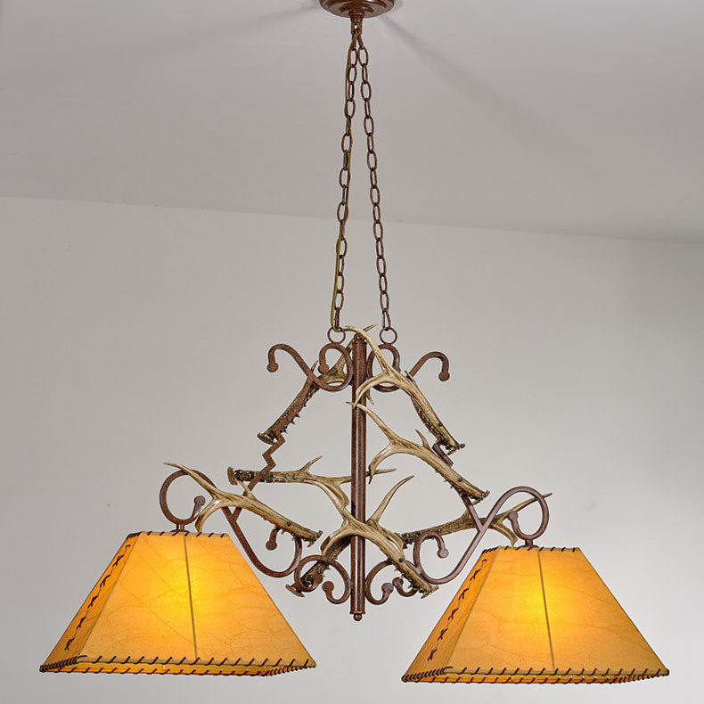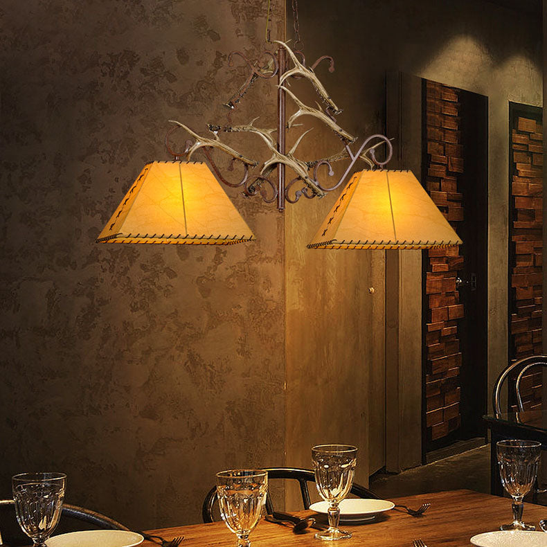 ヴィンテージ インダストリアル 樹脂製 アントラー フェイクシープスキンシェード 2灯シャンデリア