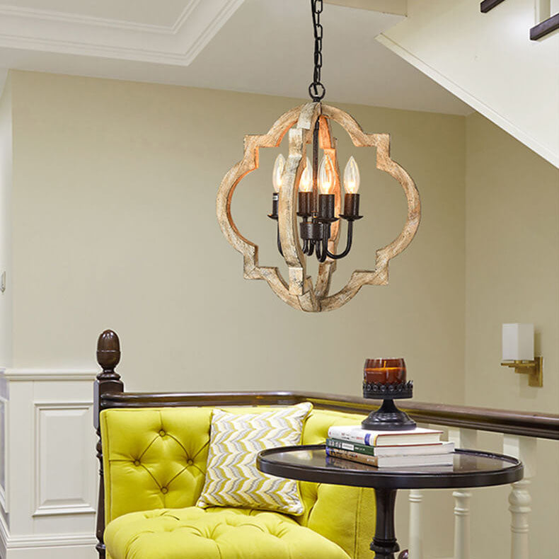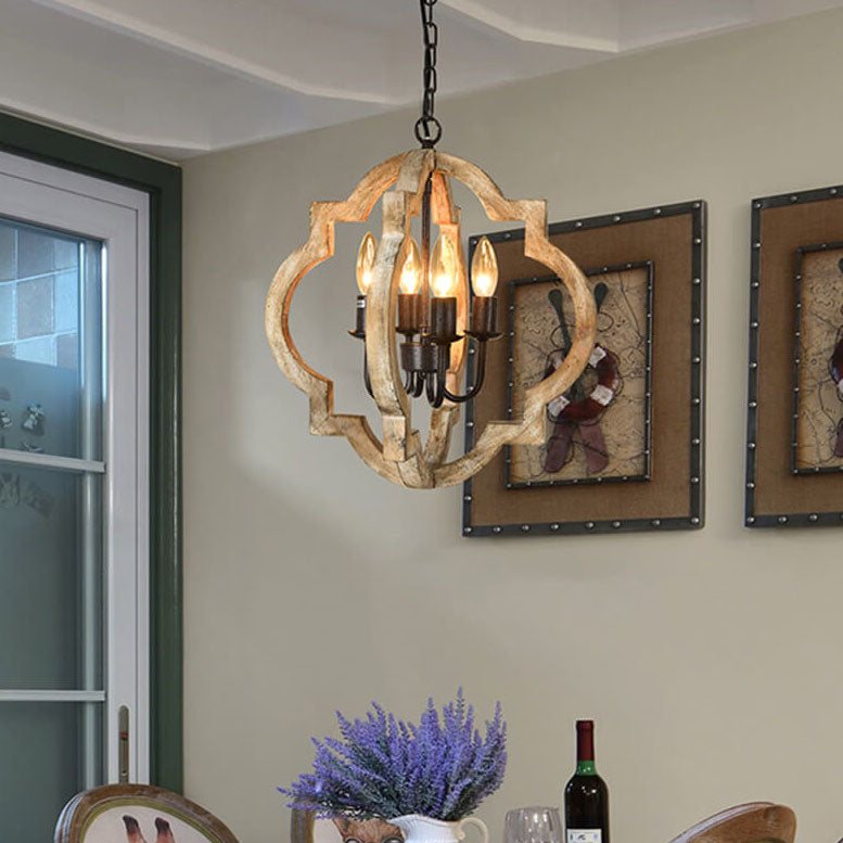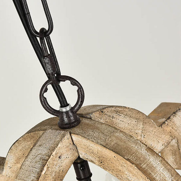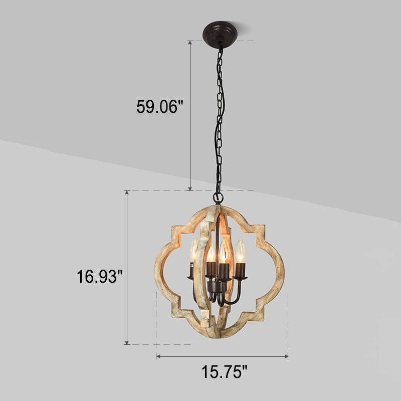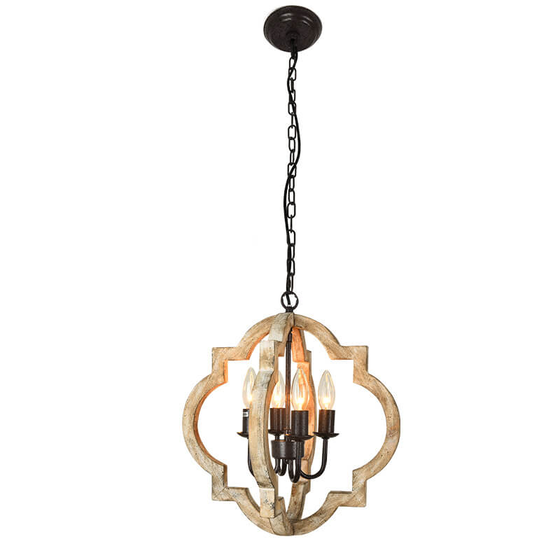 ヴィンテージ インダストリアル 木製 アイアン 4灯 アイランドライト シャンデリア