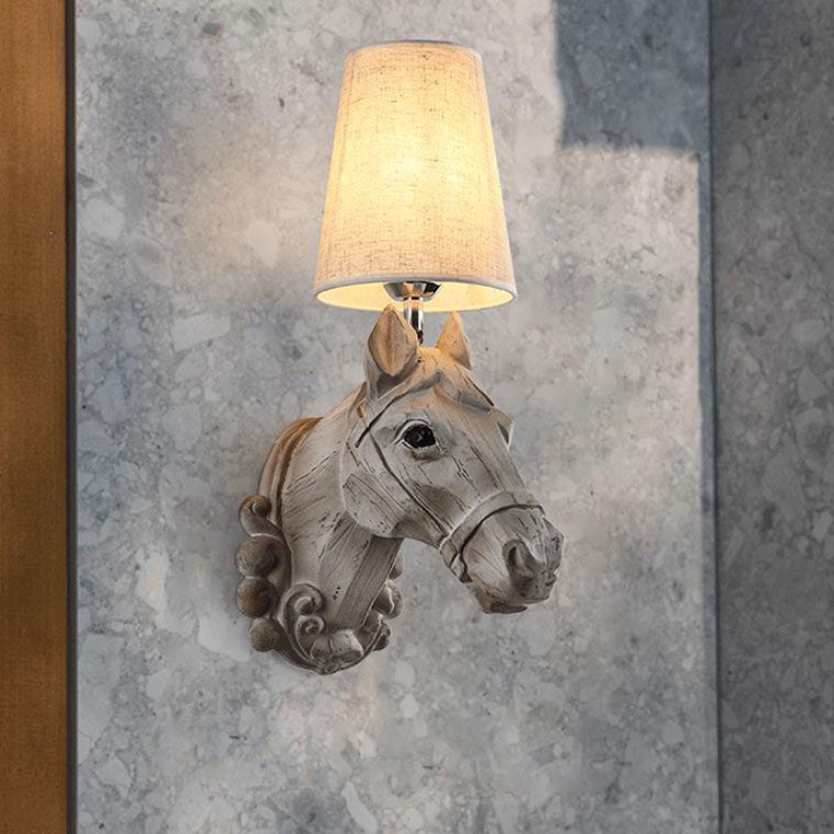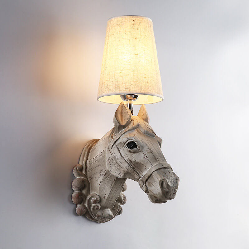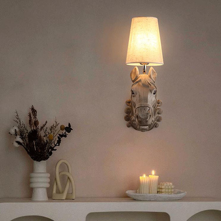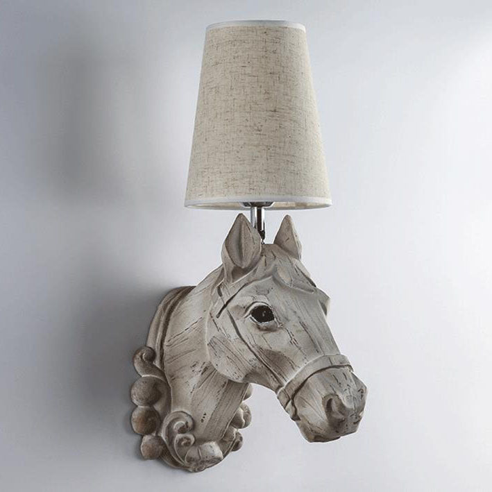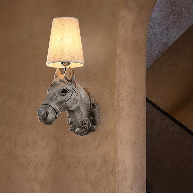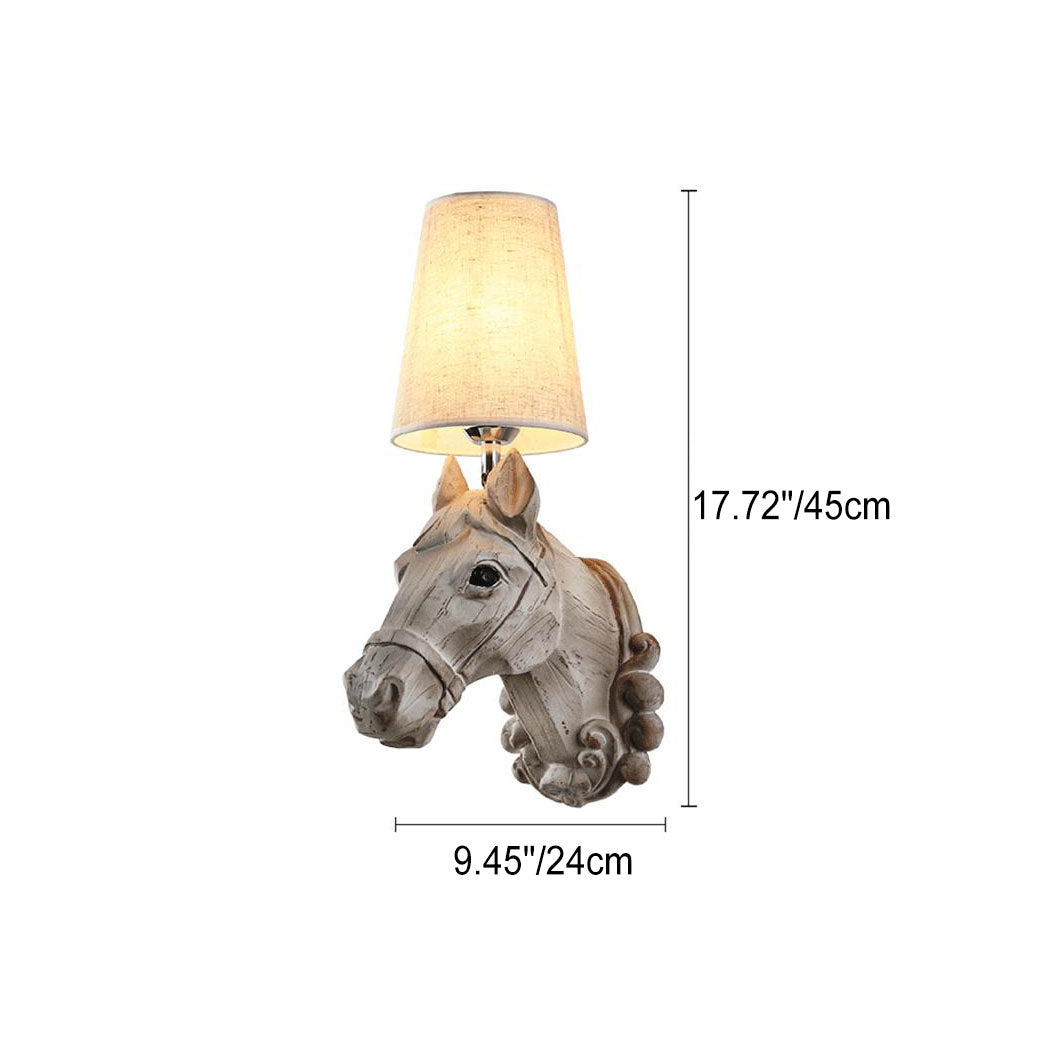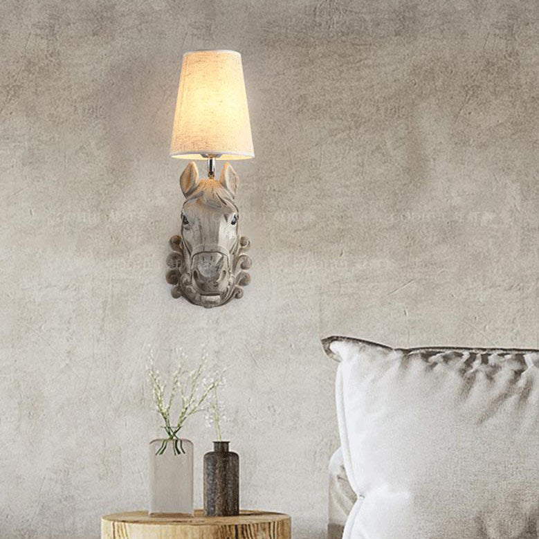 ヴィンテージ風の素朴な樹脂製馬頭ファブリックランプシェード 1灯壁付け照明