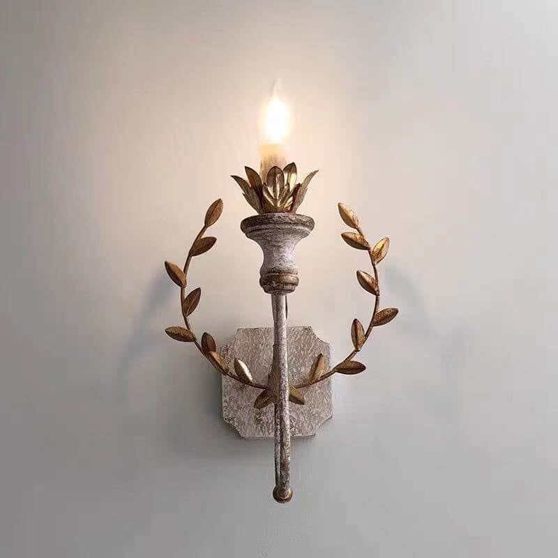 ヴィンテージ風の素朴な無垢材製燭台 1灯壁付け燭台ランプ