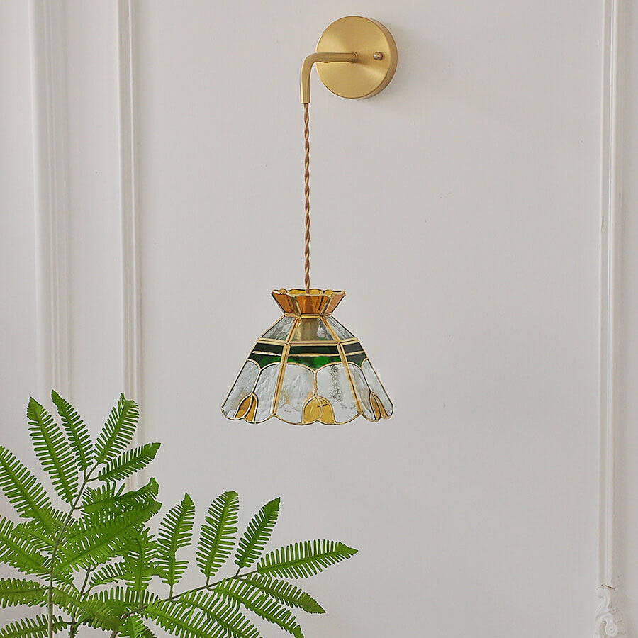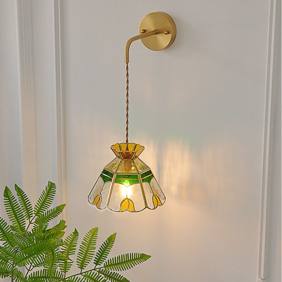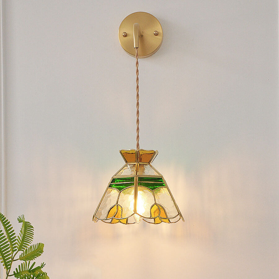 ヴィンテージステンドグラス チューリップコーン 1灯 壁付け照明