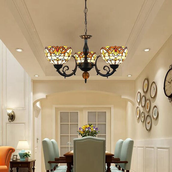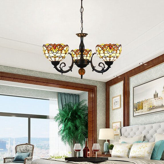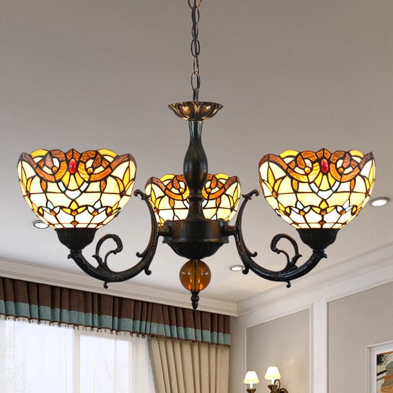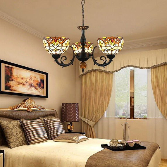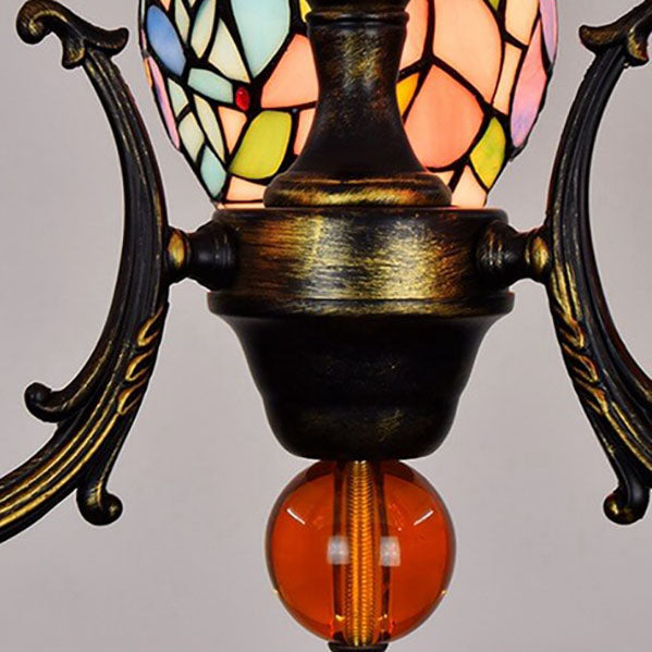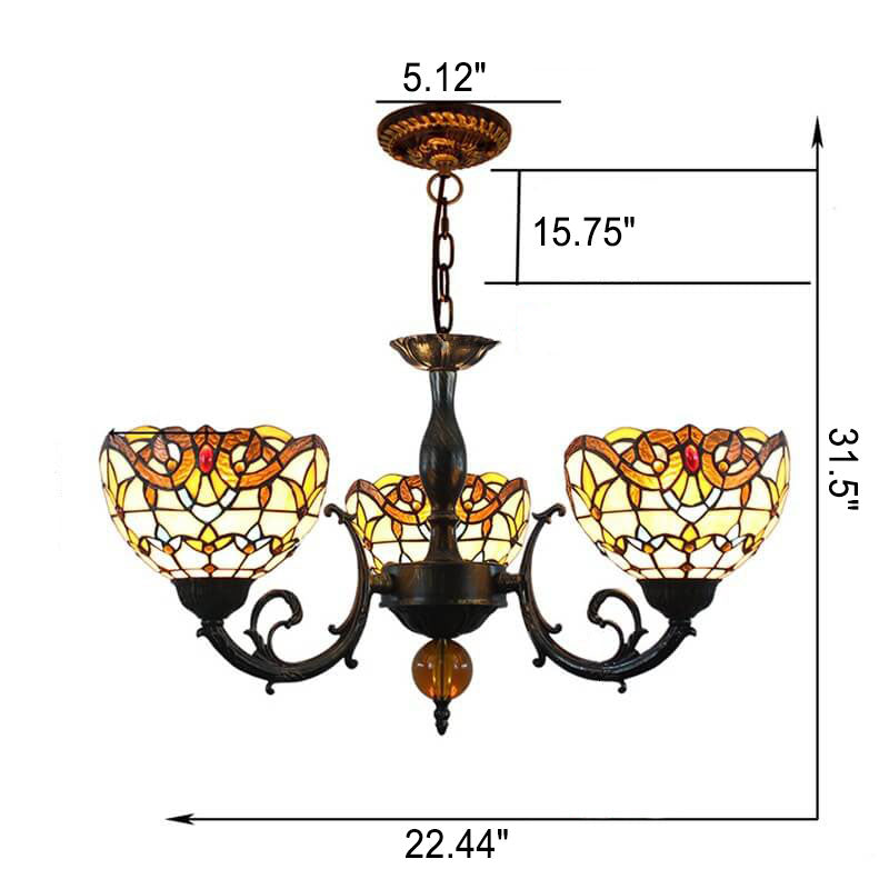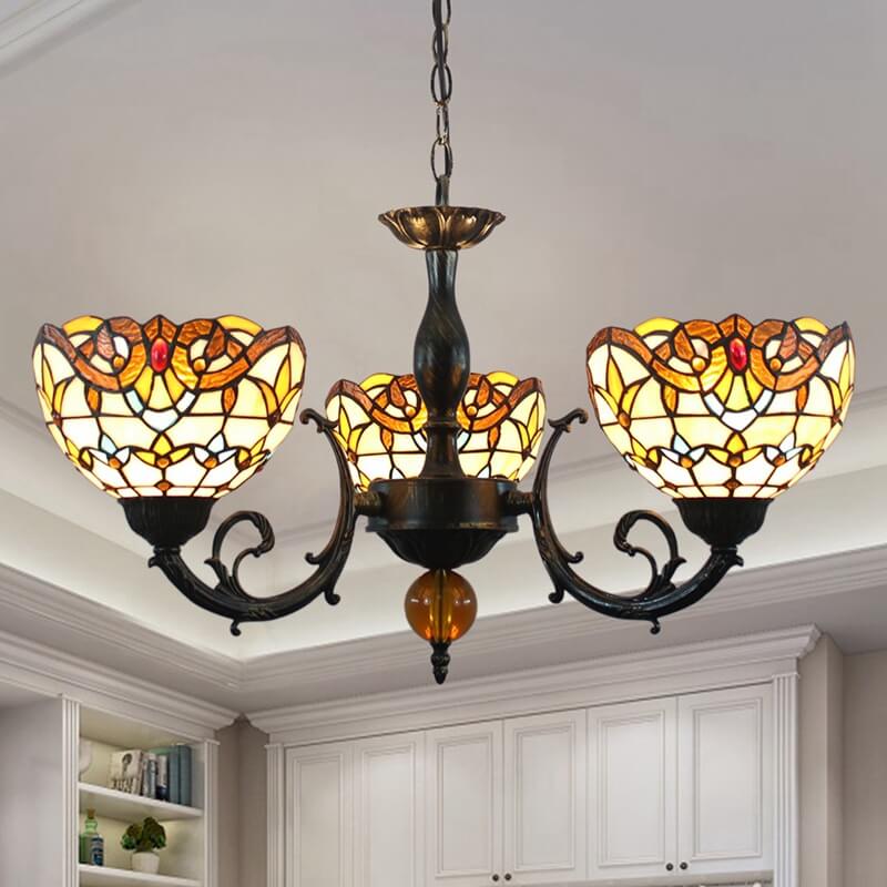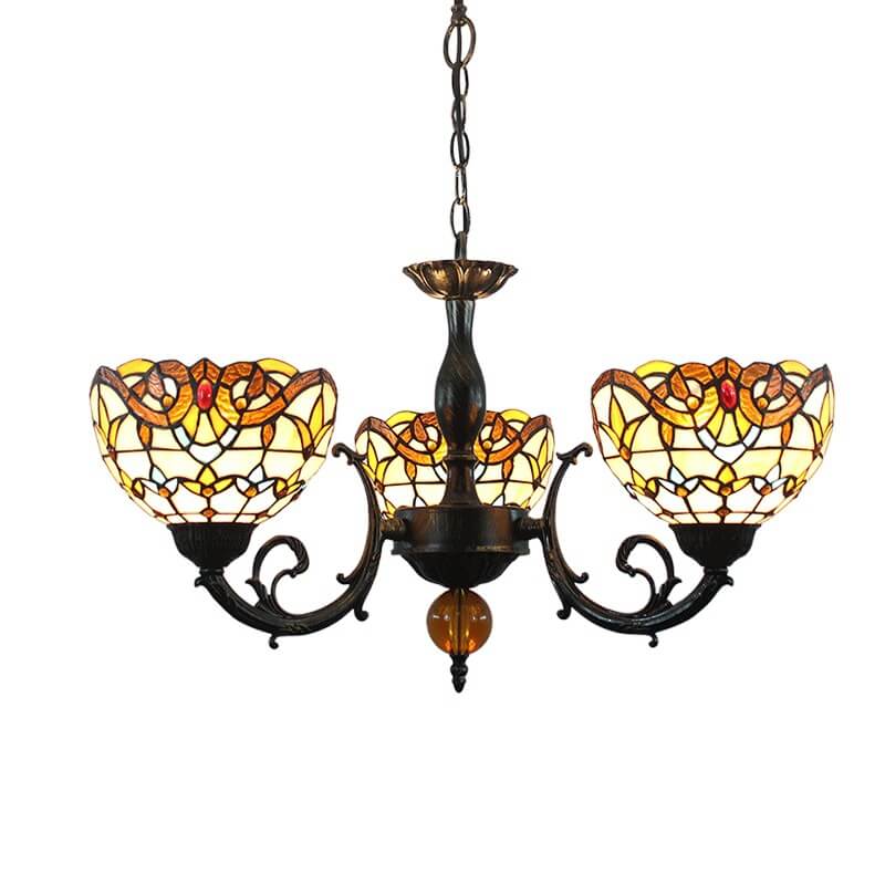 ヴィンテージ ティファニー バロック ステンドグラス 3灯シャンデリア