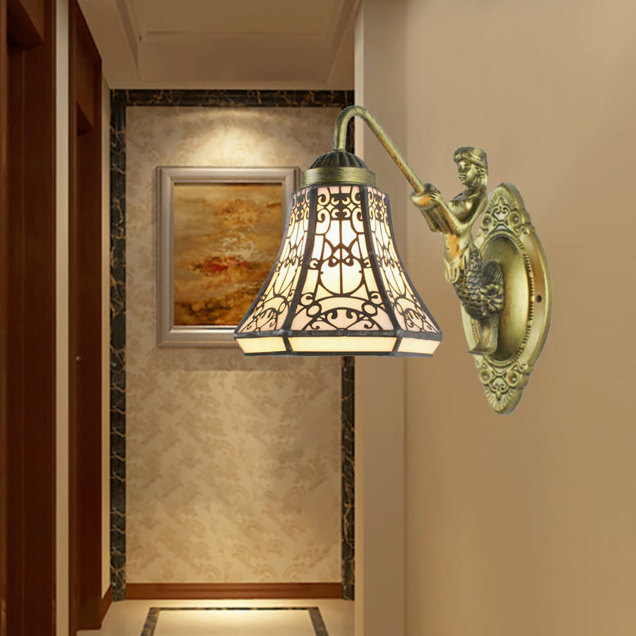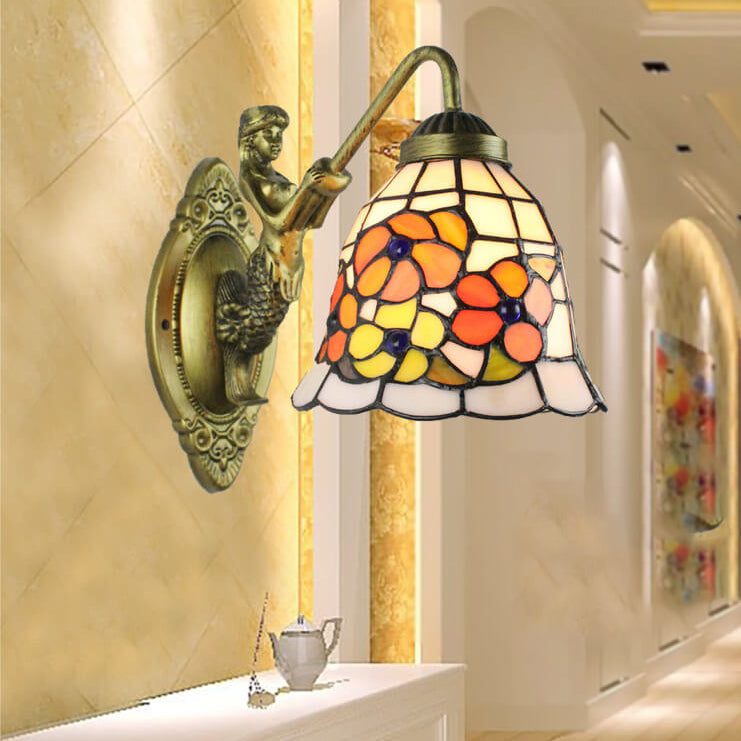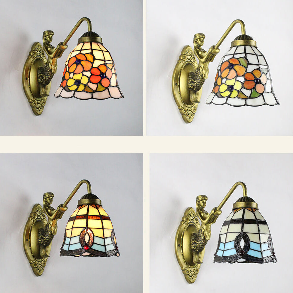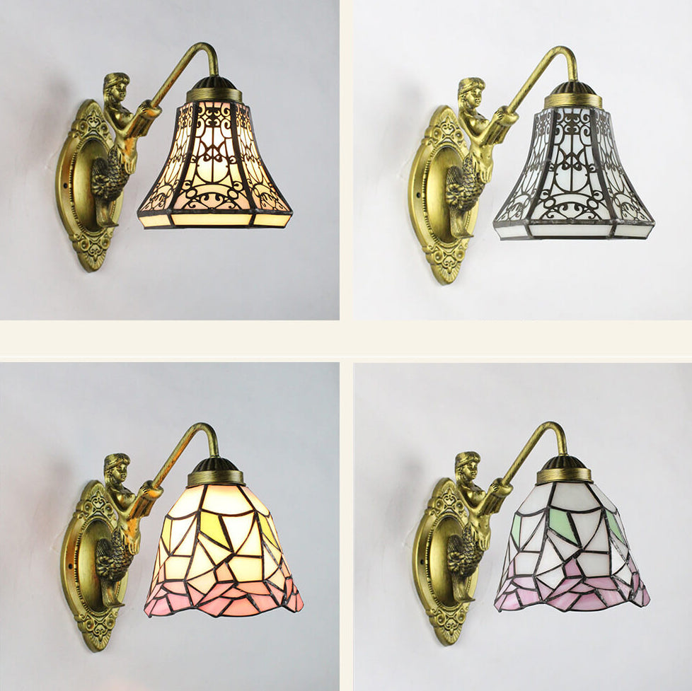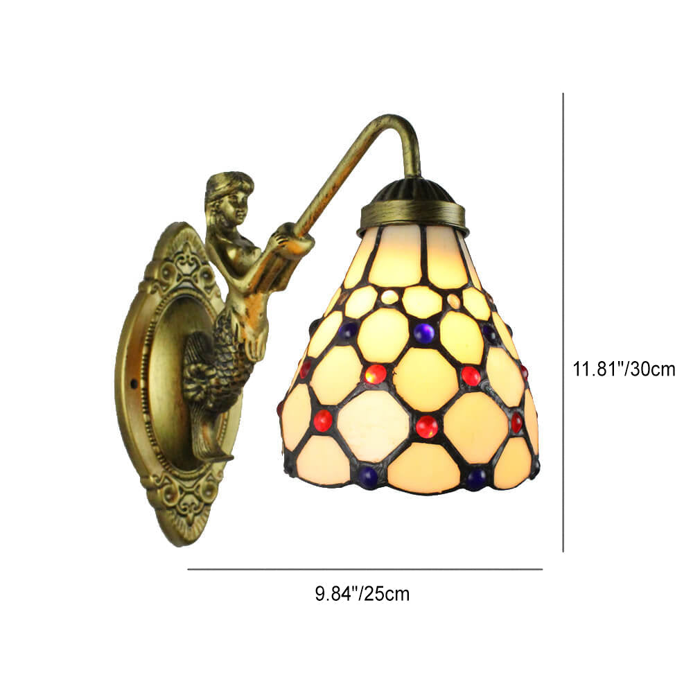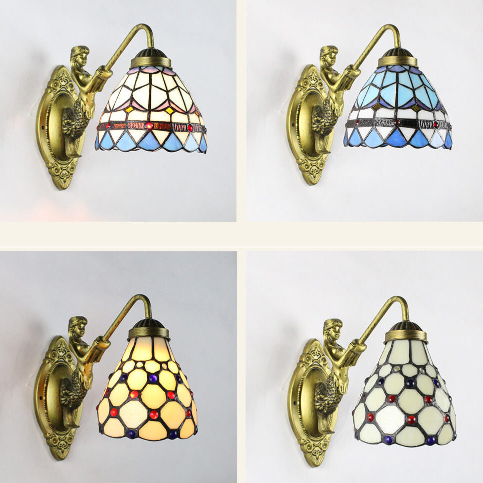 ヴィンテージ ティファニー 地中海 円錐形ステンドグラス 1灯 壁付け照明