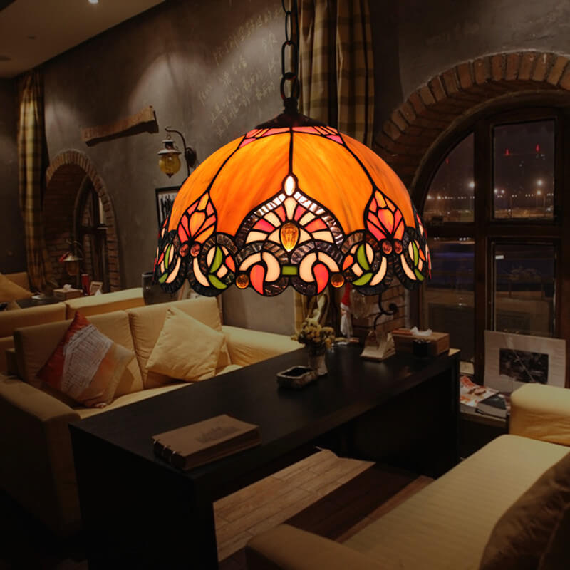 ヴィンテージ ティファニー オレンジ ステンドグラス ドーム アンティーク 1灯ペンダントライト
