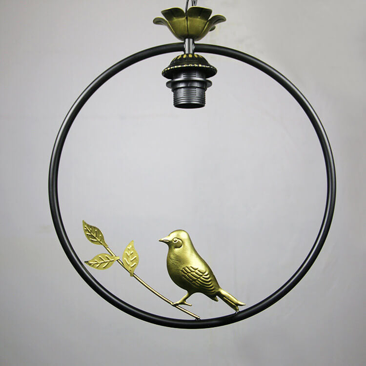 ヴィンテージ ティファニー ラウンド アイアン ステンドグラス バード 1灯ペンダントライト