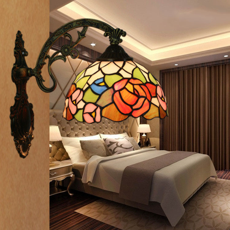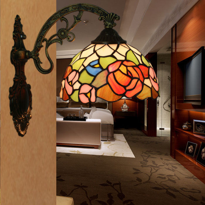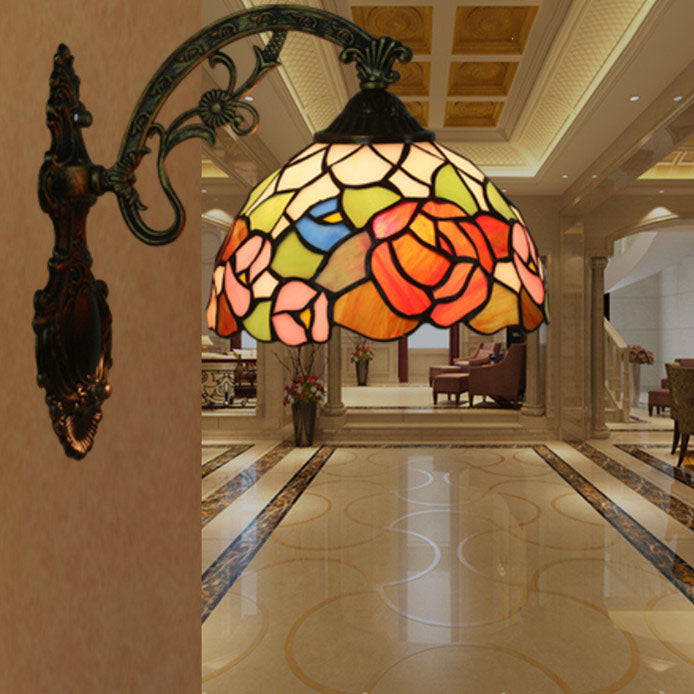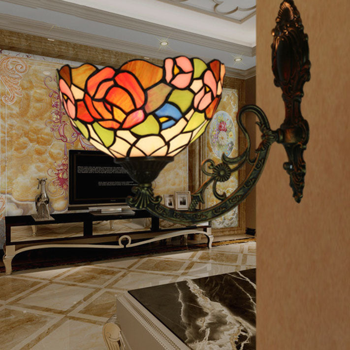 ヴィンテージ ティファニー ステンドフローラル ガラス ドーム 1灯 ウォールスコンスランプ