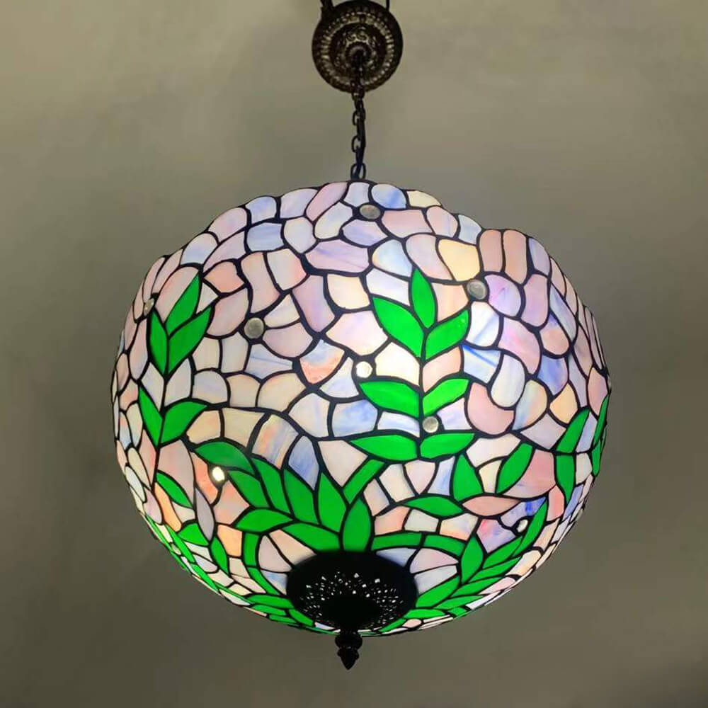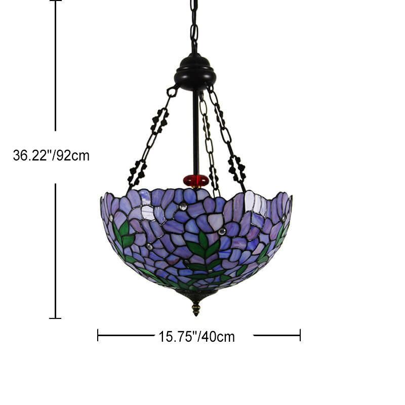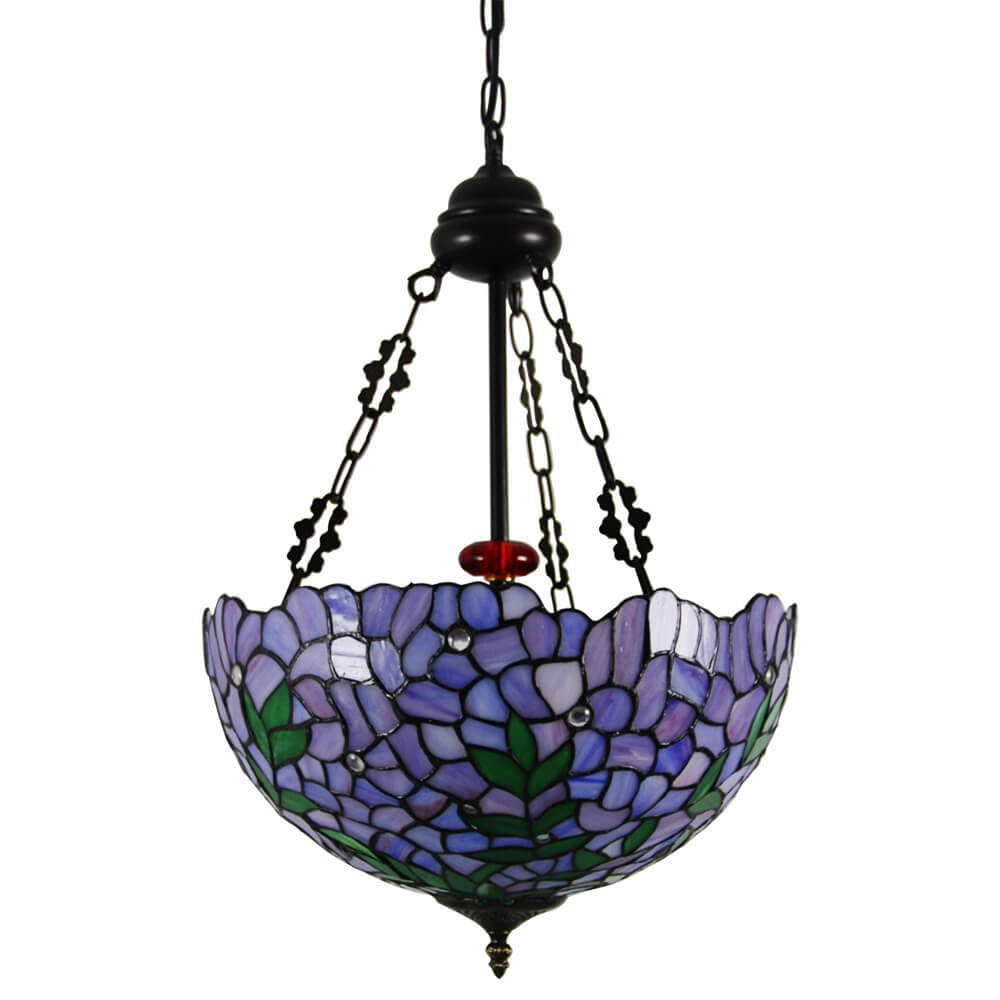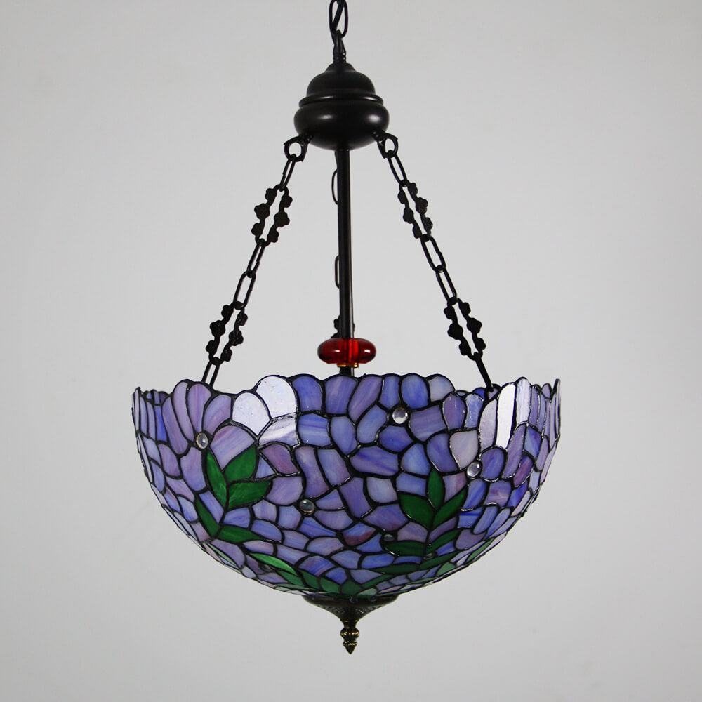 ヴィンテージ ティファニー バイオレット ステンドグラス ラウンド 3 ライト シャンデリア