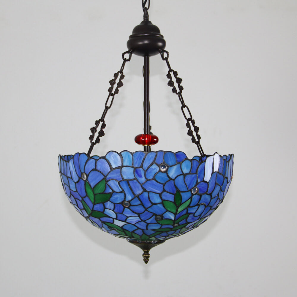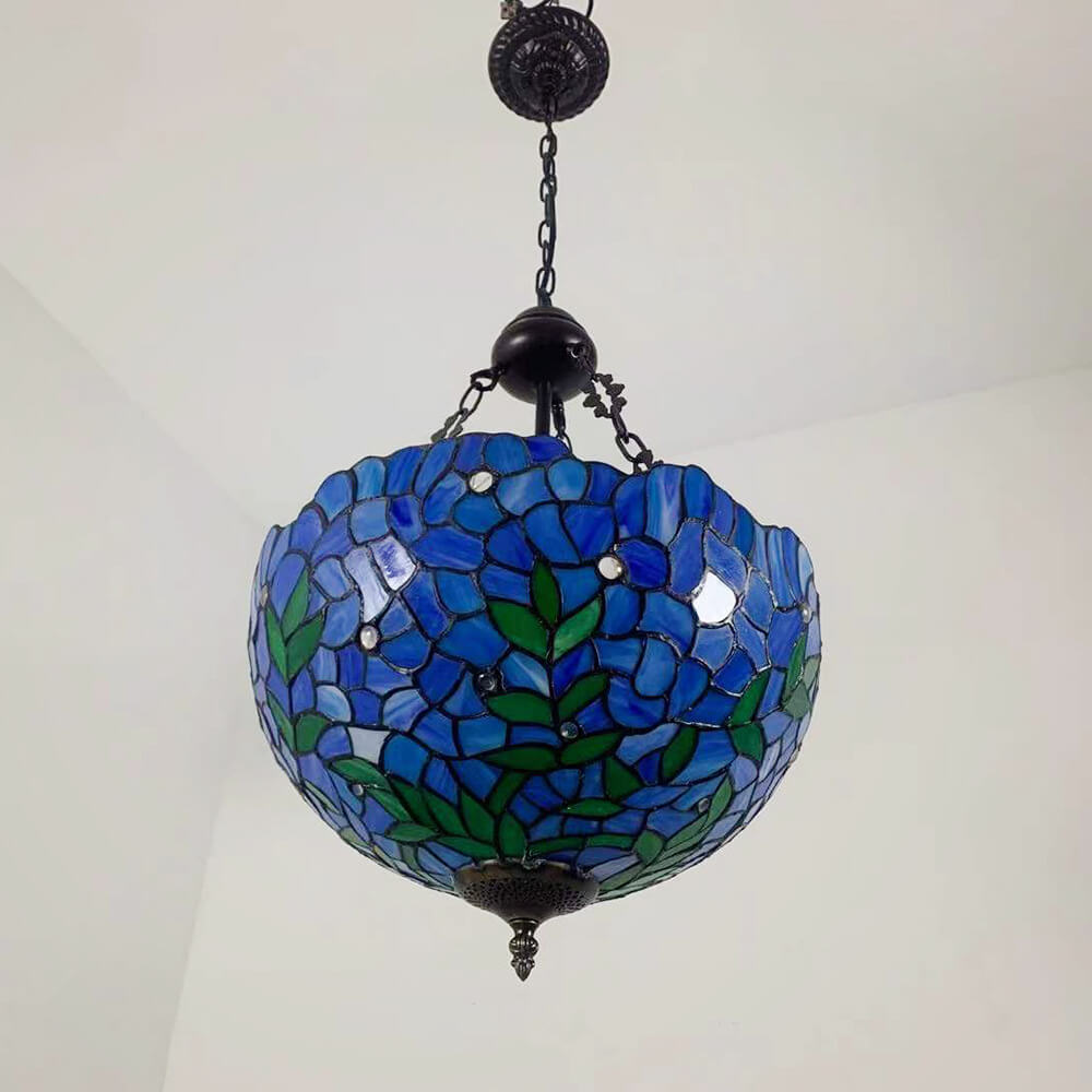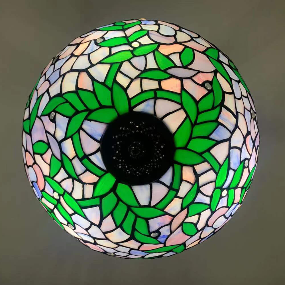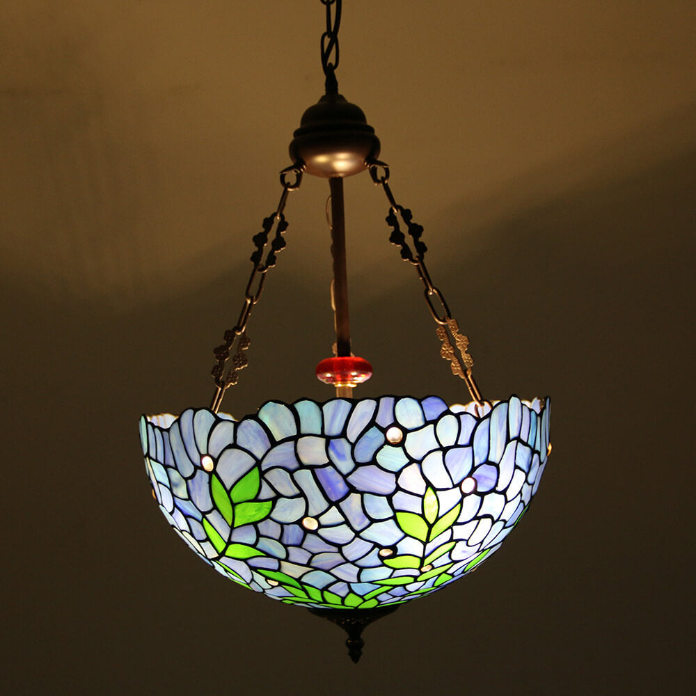 ヴィンテージ ティファニー バイオレット ステンドグラス ラウンド 3 ライト シャンデリア