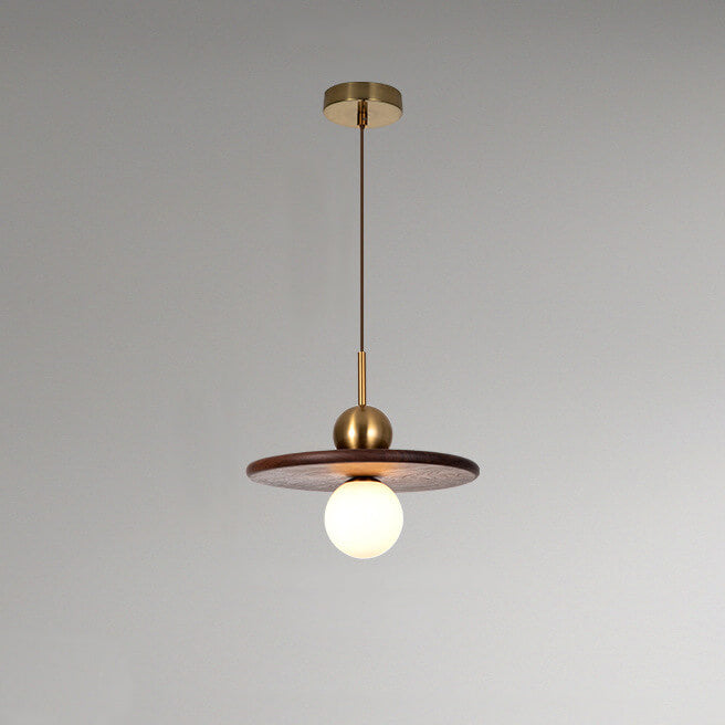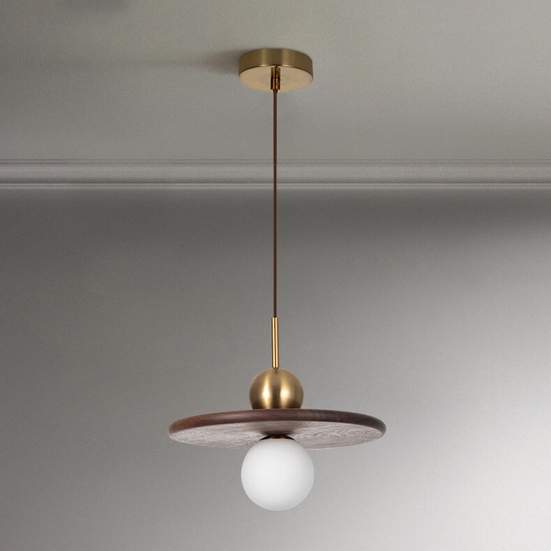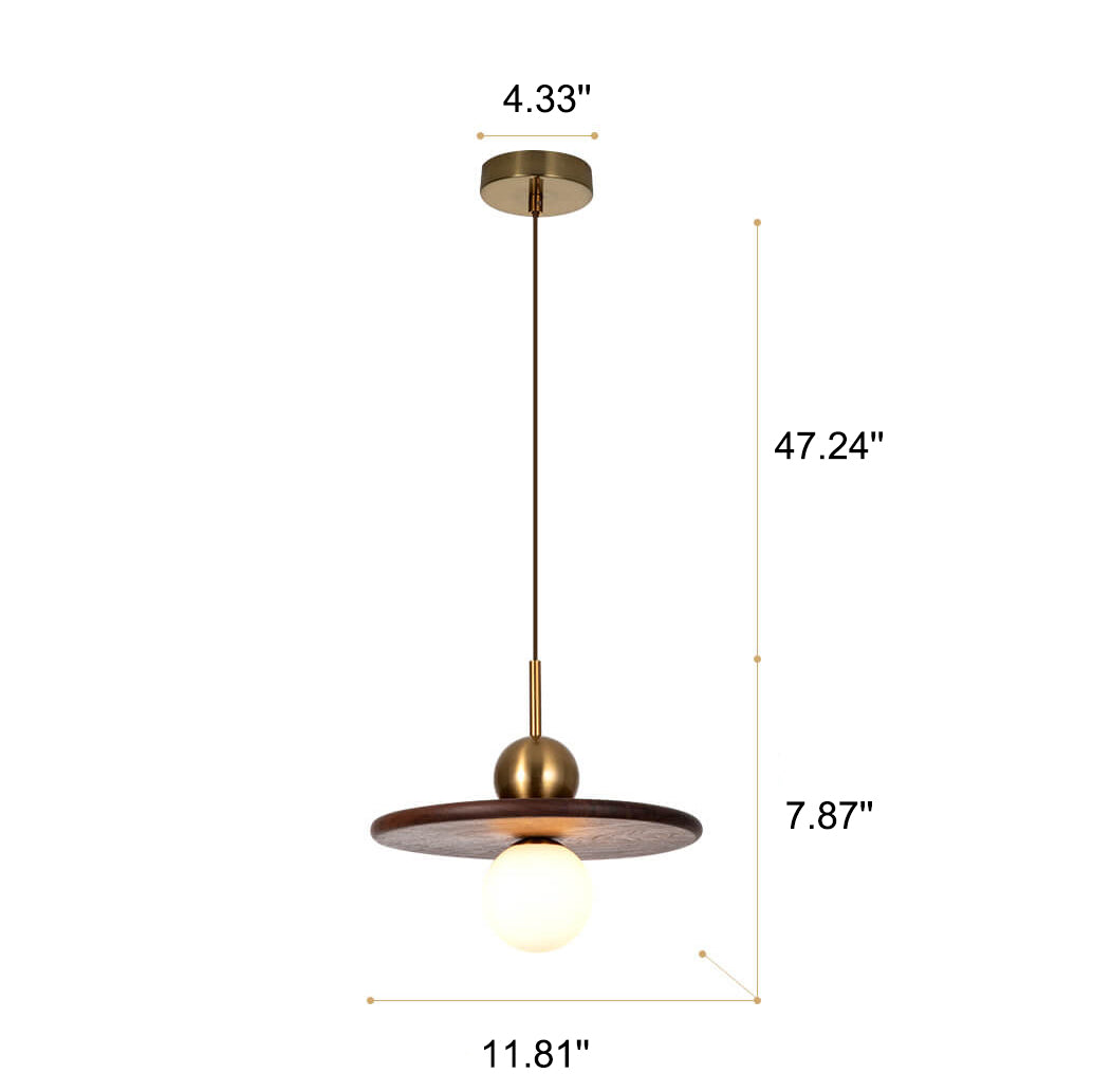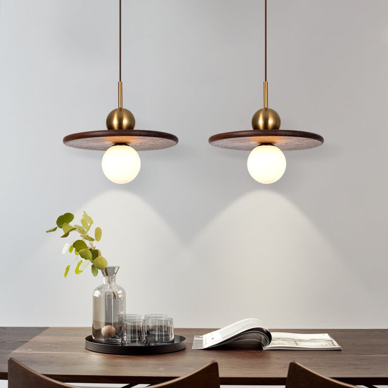 ヴィンテージ ウォールナット無垢材 ガラスボール 1灯 LEDペンダントライト