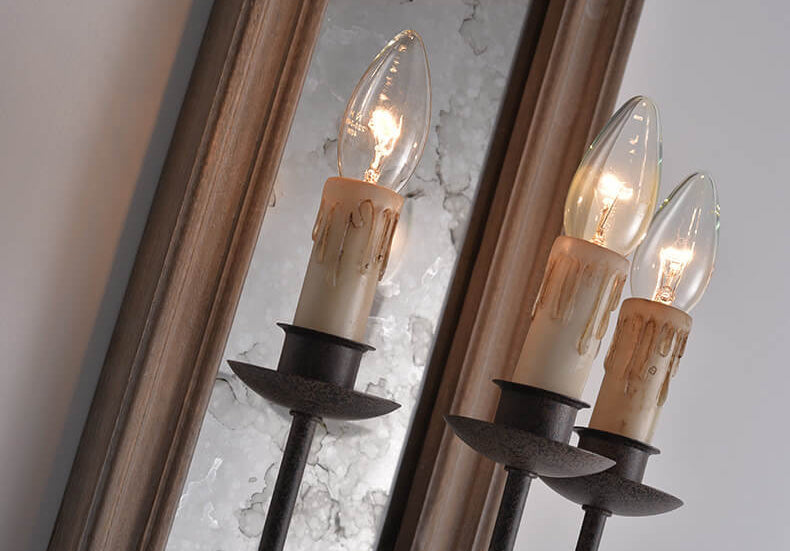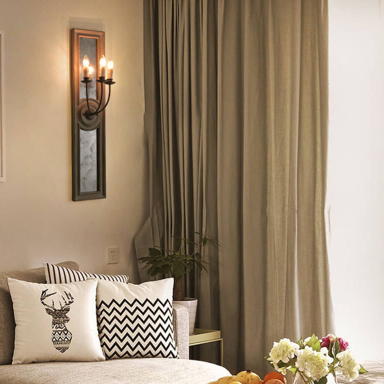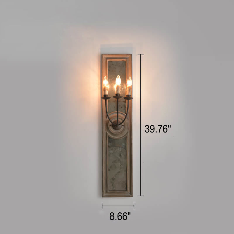 ヴィンテージ木製ロングフレームシャンデリア3灯壁付け燭台ランプ