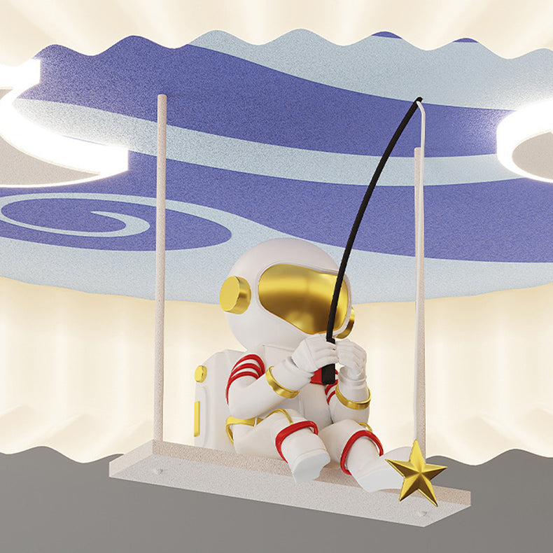 現代的でクリエイティブな宇宙飛行士の丸型アイアンアクリルLEDフラッシュマウントシーリングライト寝室用