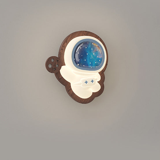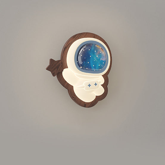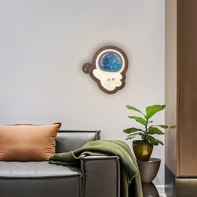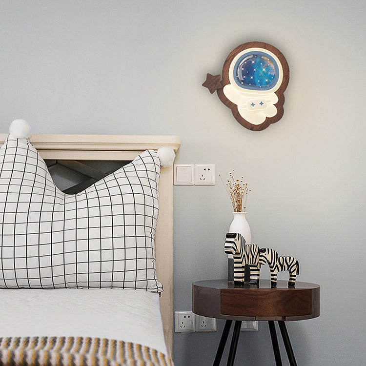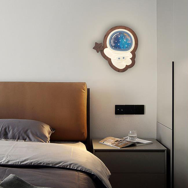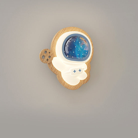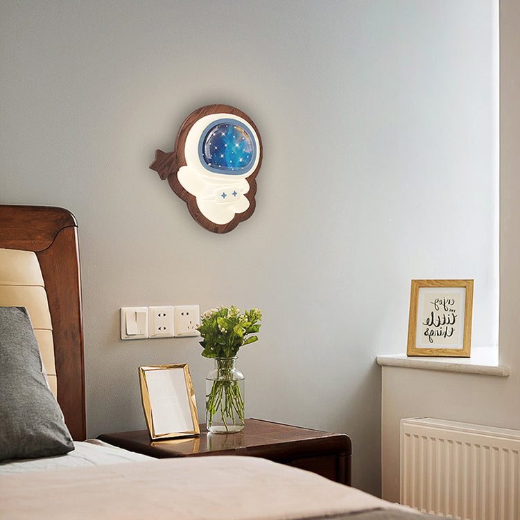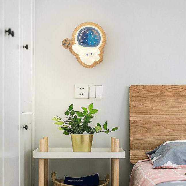 現代的でクリエイティブな宇宙飛行士の木製ベースPEシェードLED壁取り付け用燭台ランプ(寝室用)