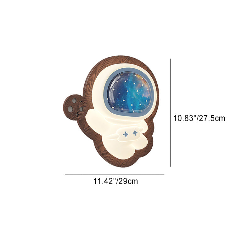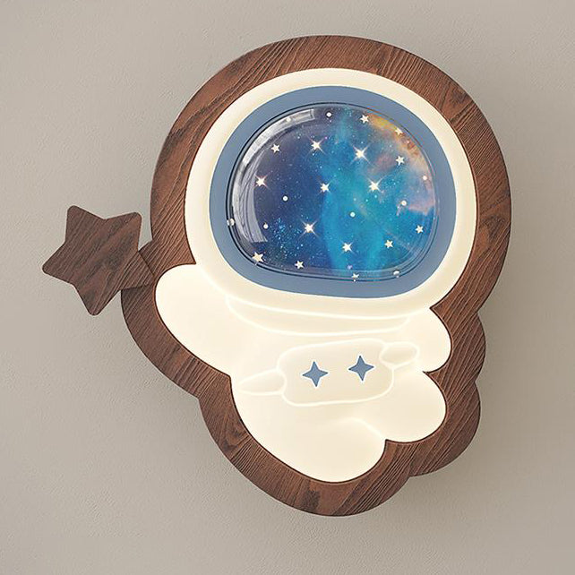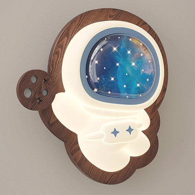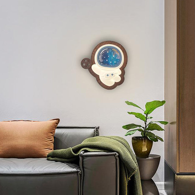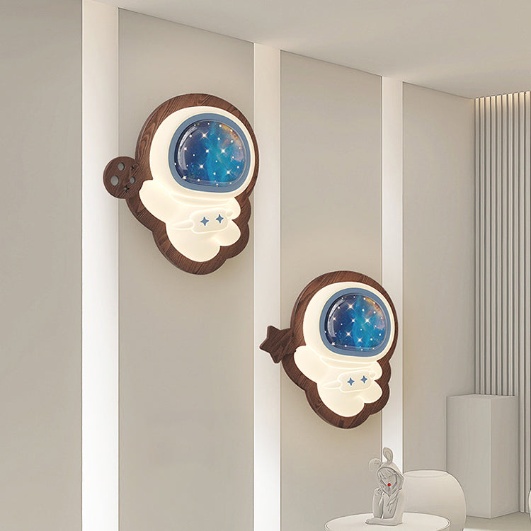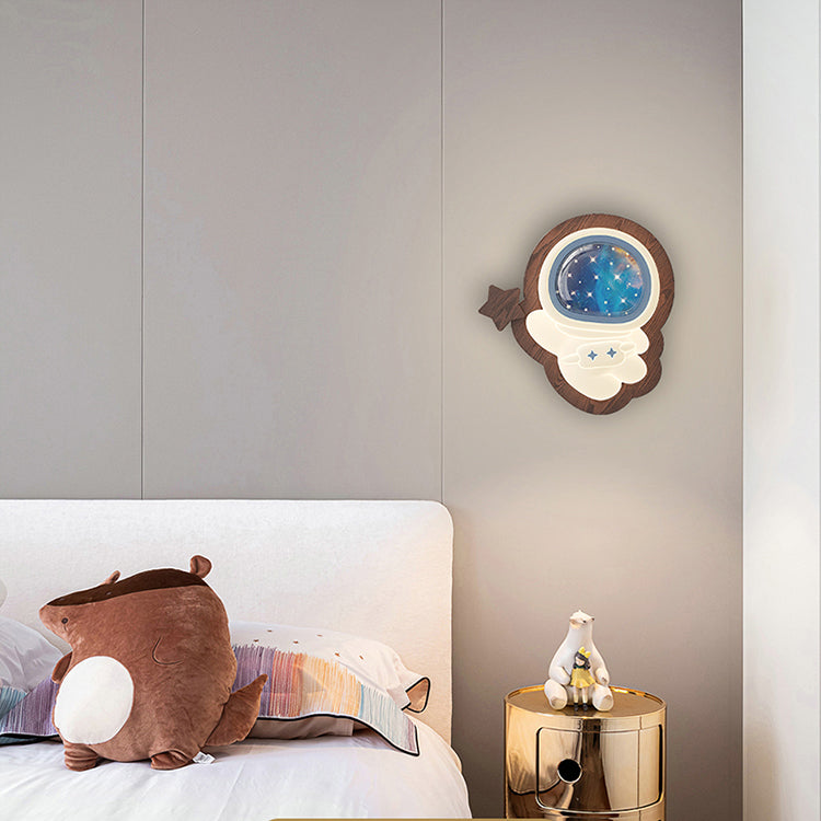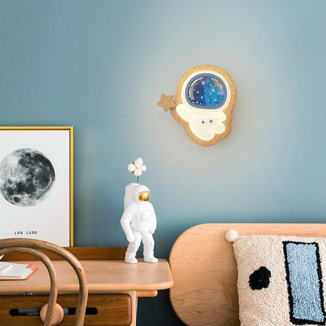 現代的でクリエイティブな宇宙飛行士の木製ベースPEシェードLED壁取り付け用燭台ランプ(寝室用)