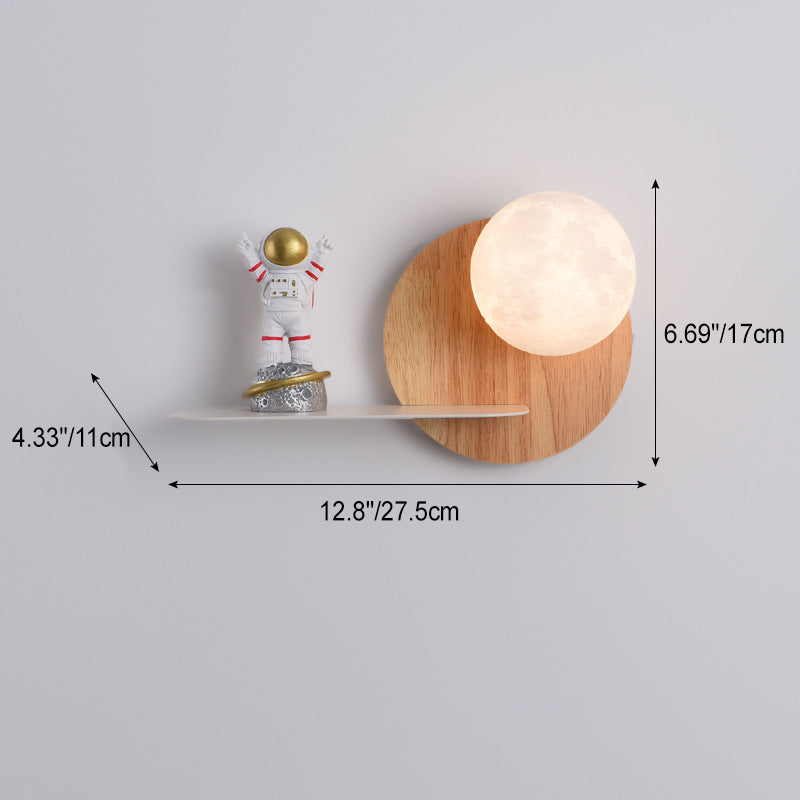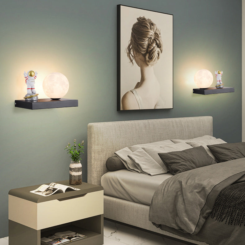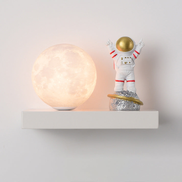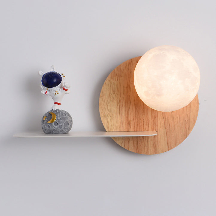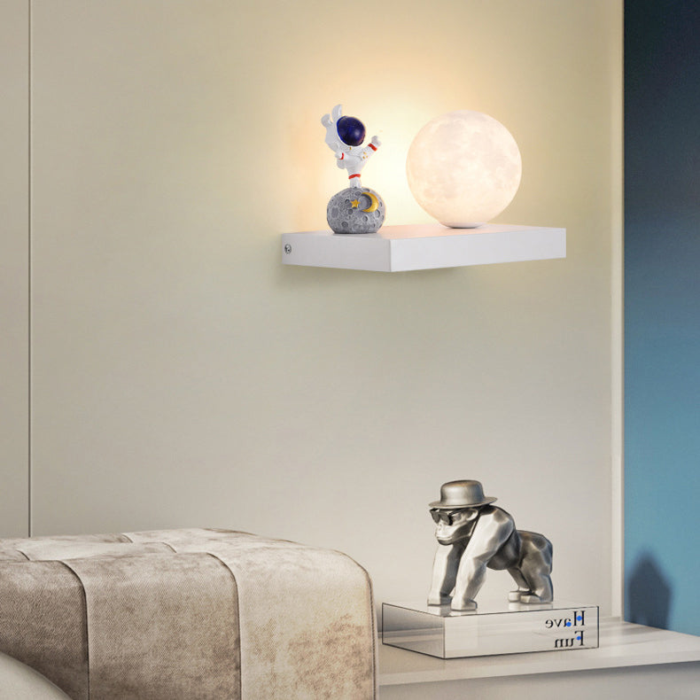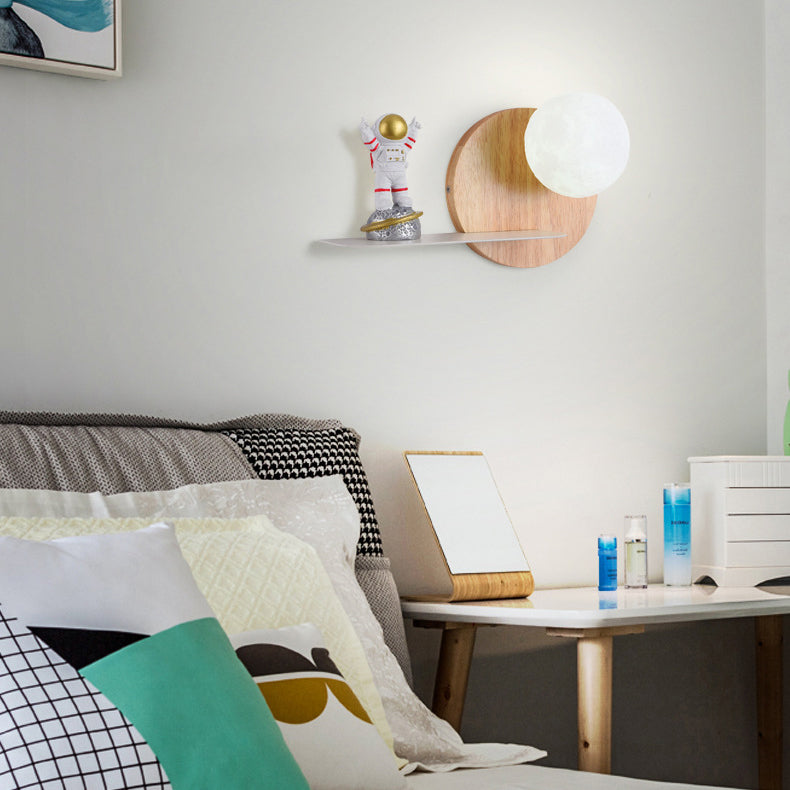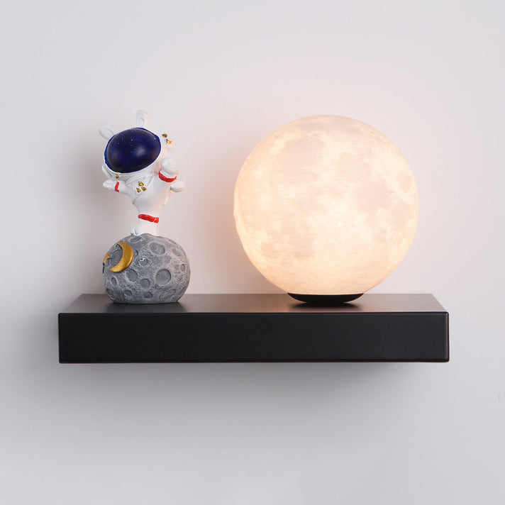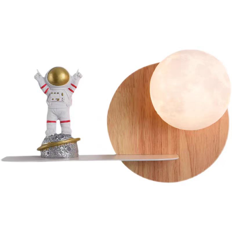 現代的でクリエイティブな漫画のウサギの宇宙飛行士の鉄樹脂木製1ライト壁取り付け用燭台ランプ寝室用
