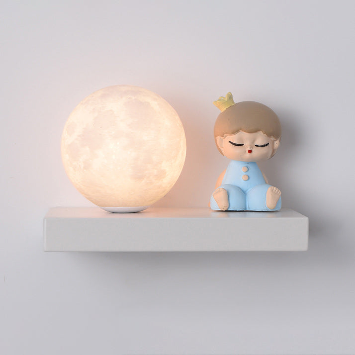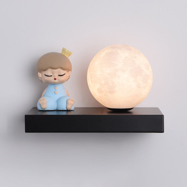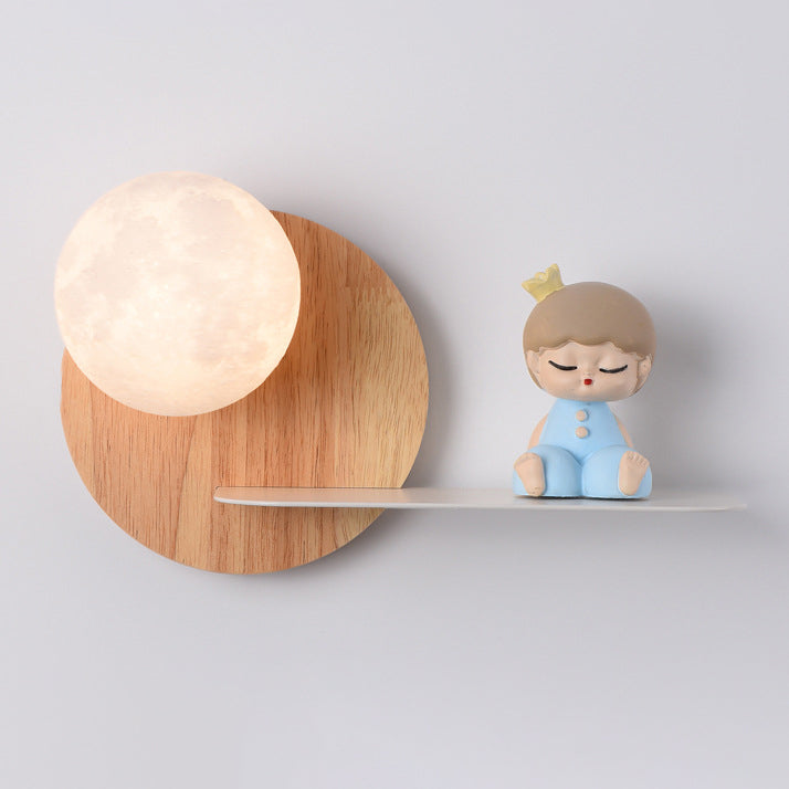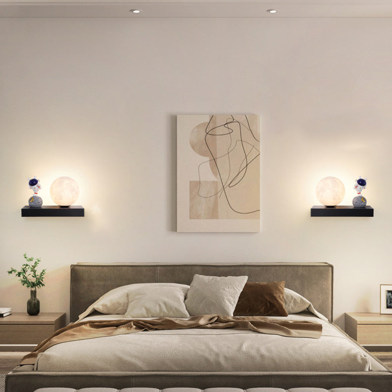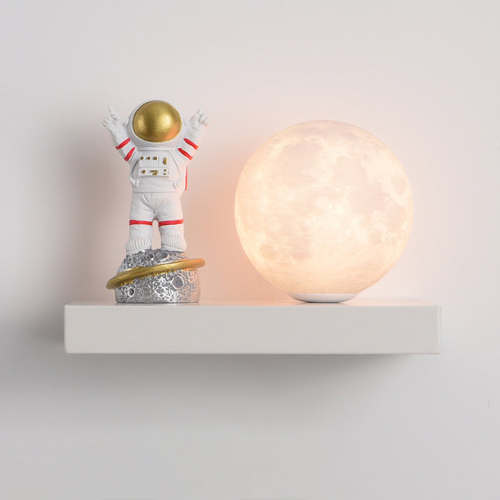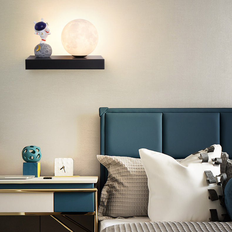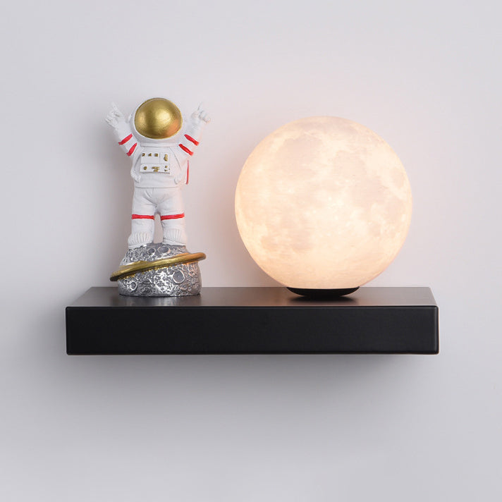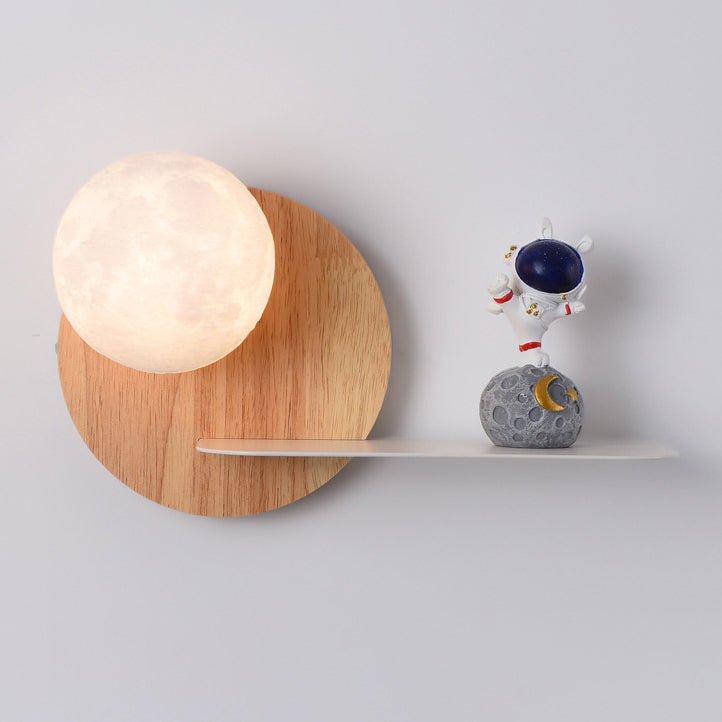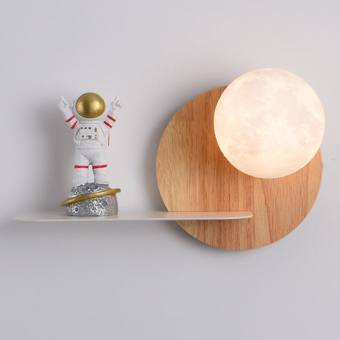 現代的でクリエイティブな漫画のウサギの宇宙飛行士の鉄樹脂木製1ライト壁取り付け用燭台ランプ寝室用