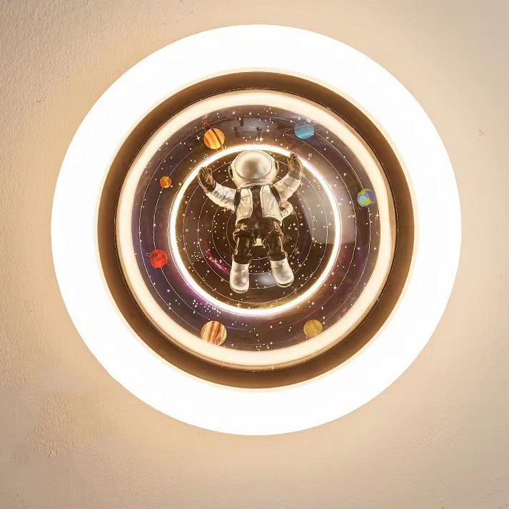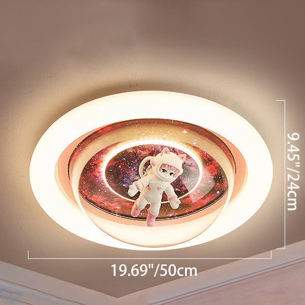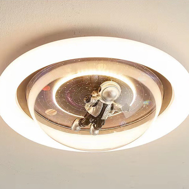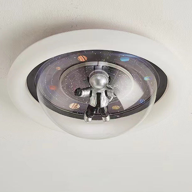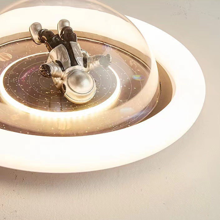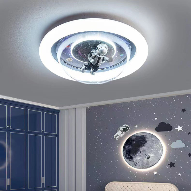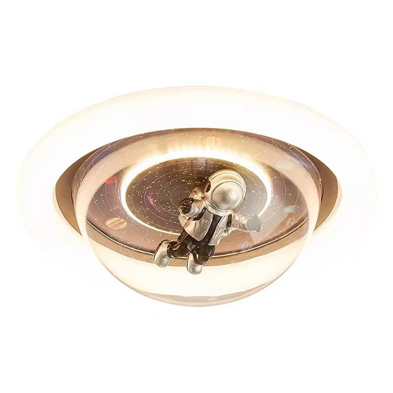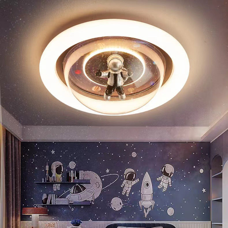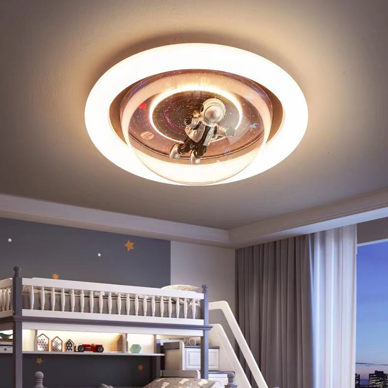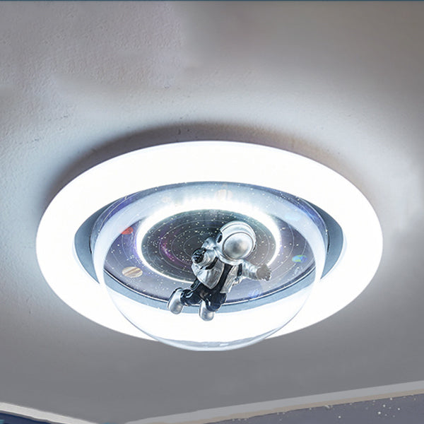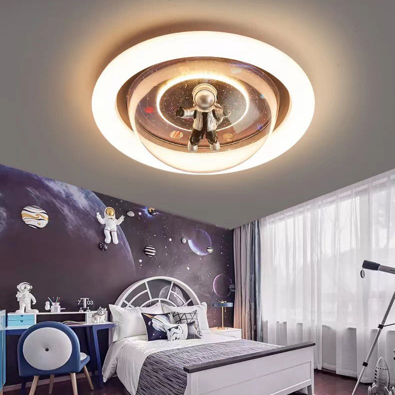 現代的でクリエイティブな漫画風樹脂製惑星宇宙飛行士アイアンアクリル製LEDフラッシュマウントシーリングライト(寝室用)