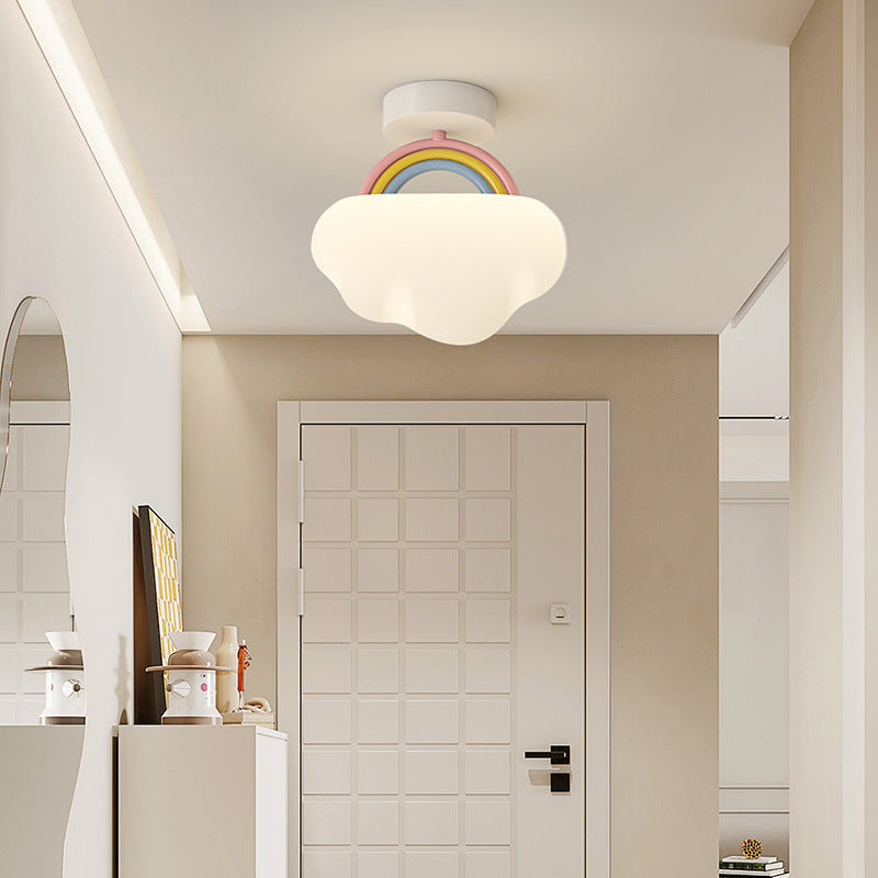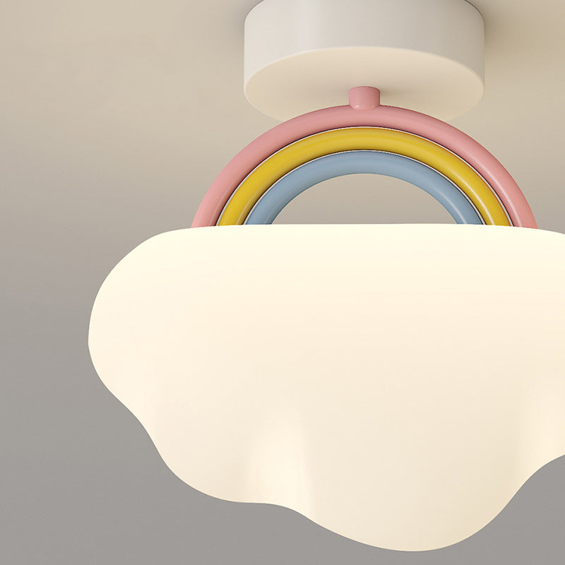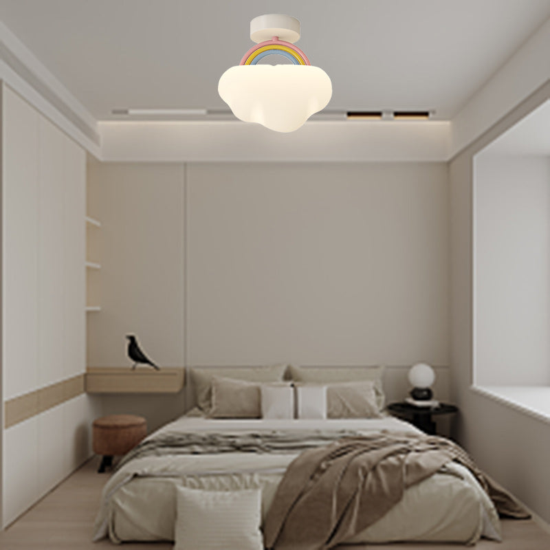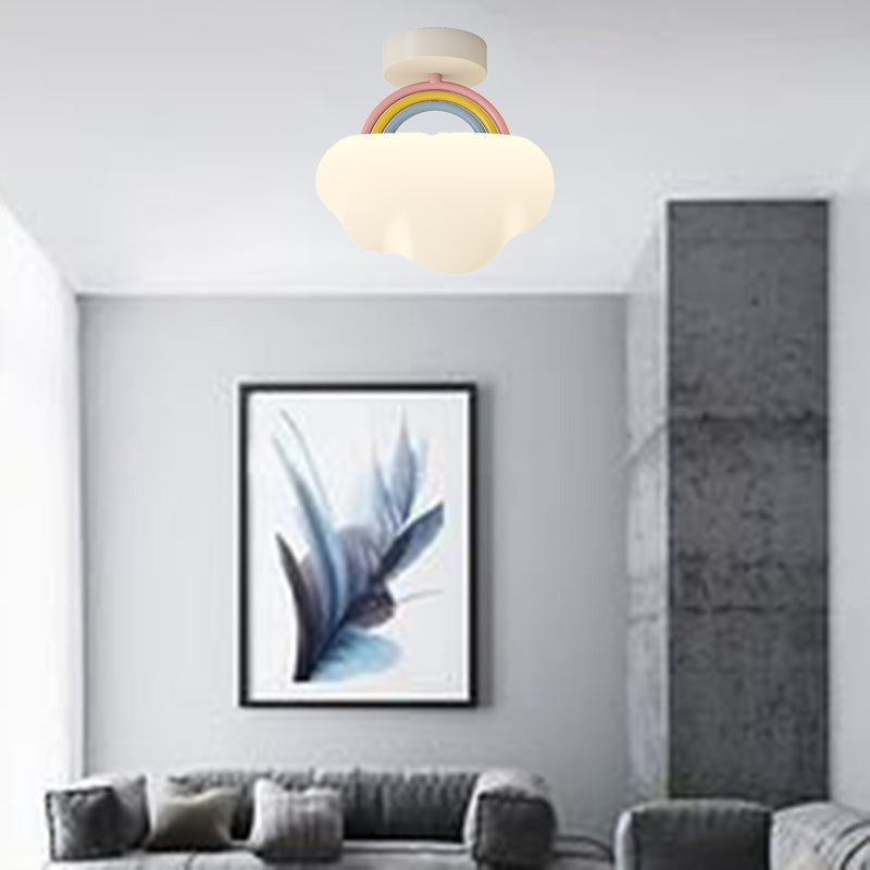 現代的でクリエイティブなクリーム色のレインボークラウドPEアイアンLEDセミフラッシュマウントシーリングライト寝室用
