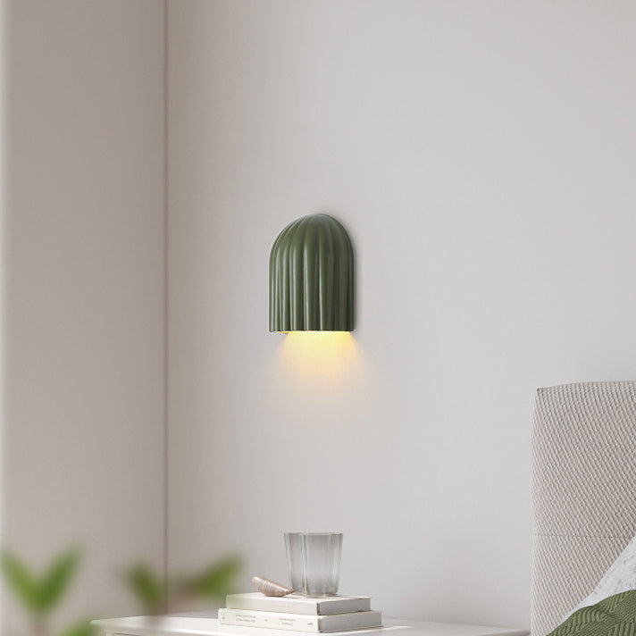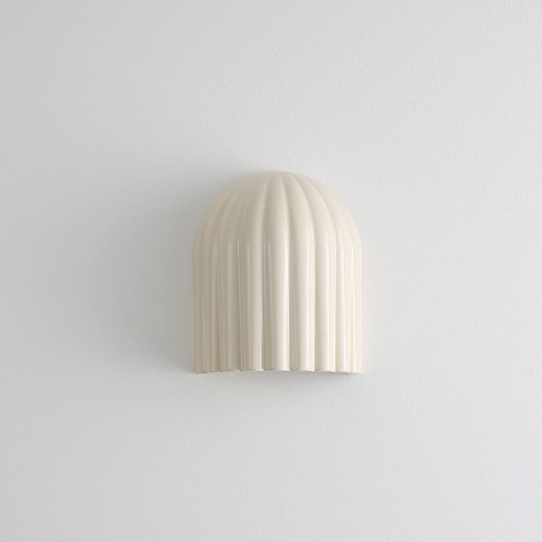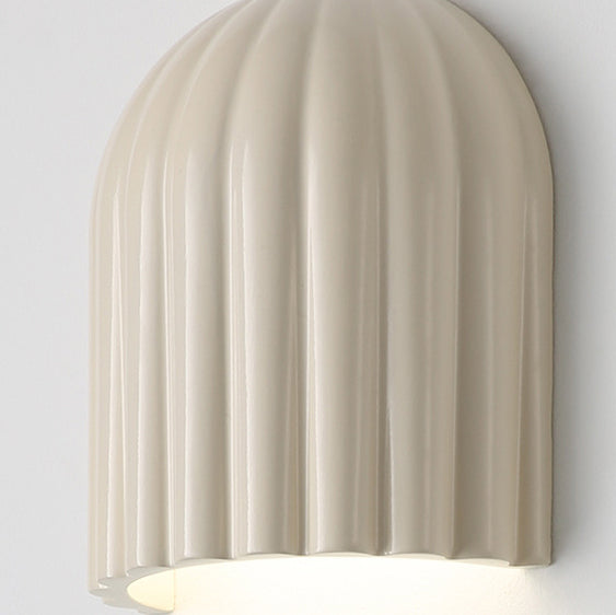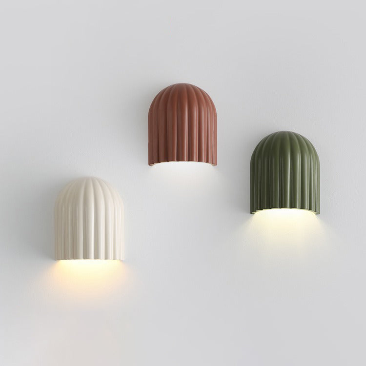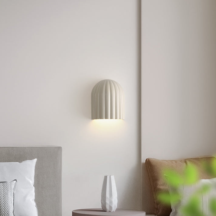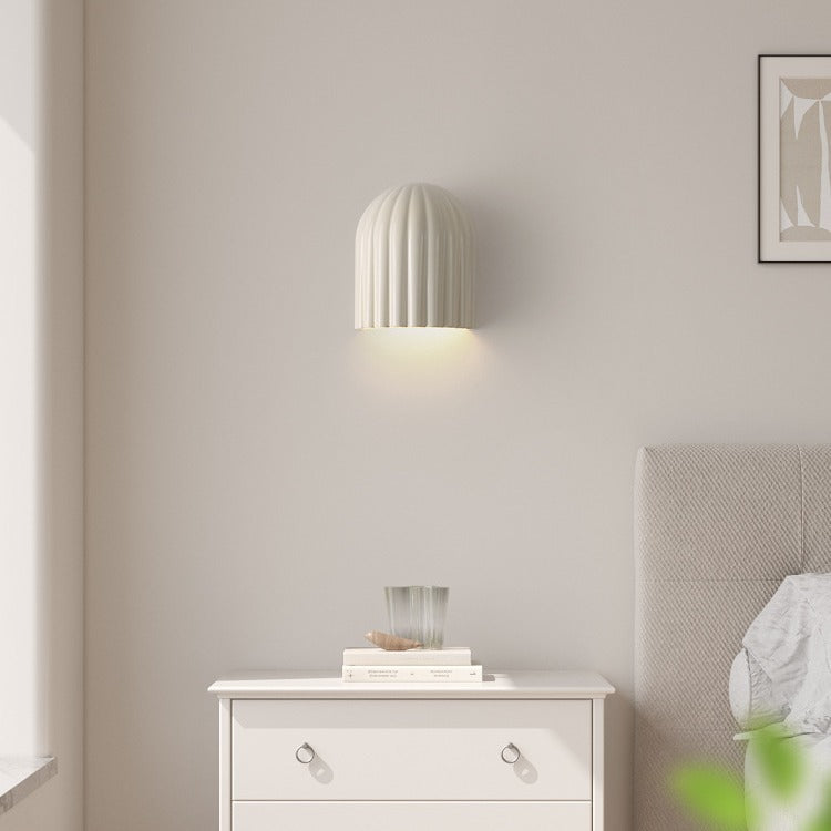 現代的でクリエイティブなクリーム色の半円形の縦縞模様の鉄製ランプシェード2個 - 寝室用ライト付き壁取り付け用燭台ランプ