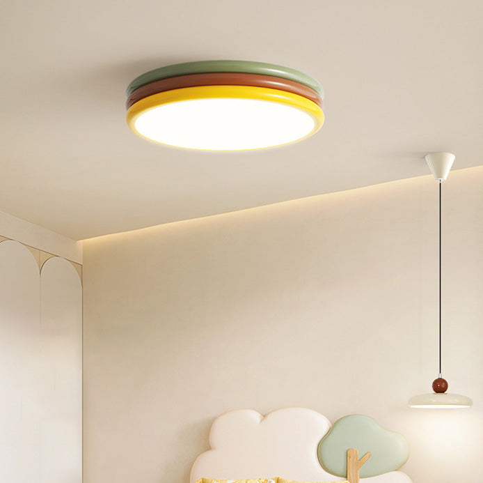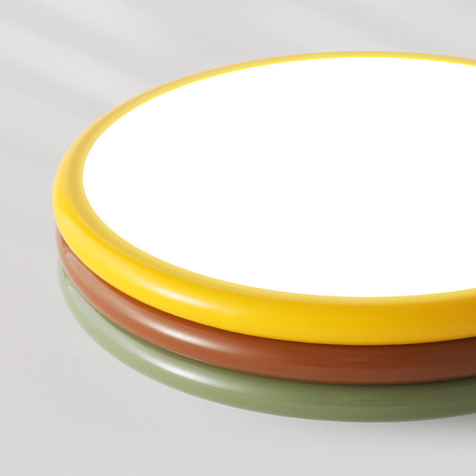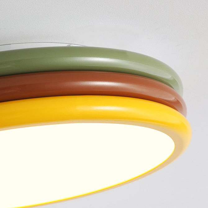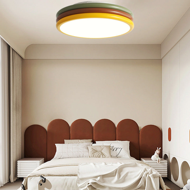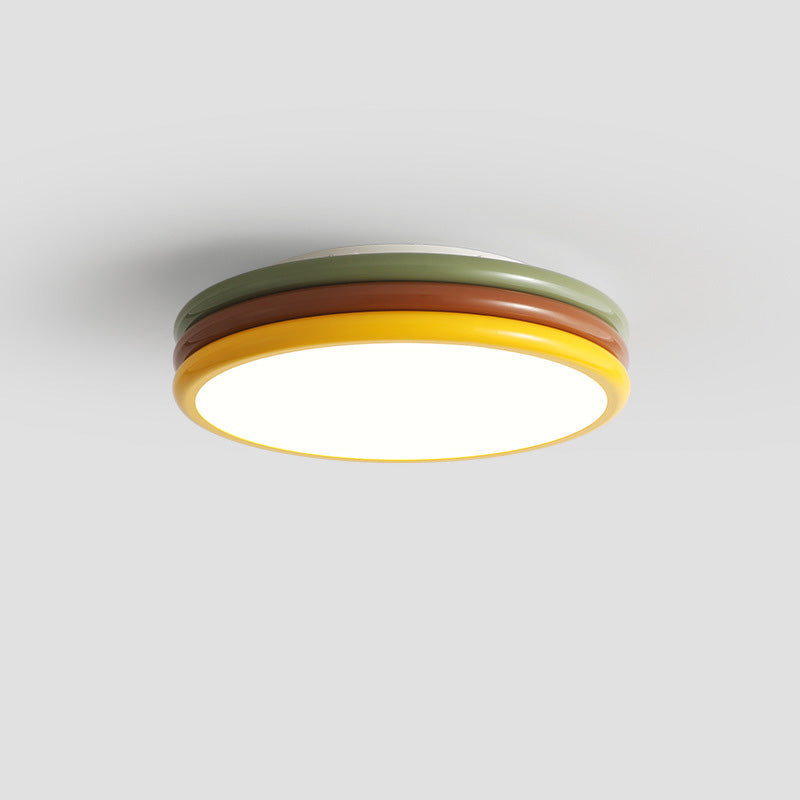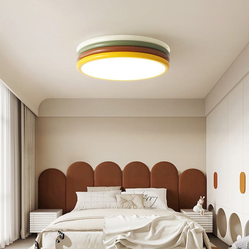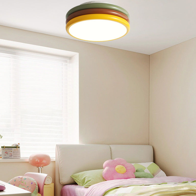 現代的でクリエイティブな鉄製アクリル製ラウンドハンバーガーLEDフラッシュマウントシーリングライト寝室用