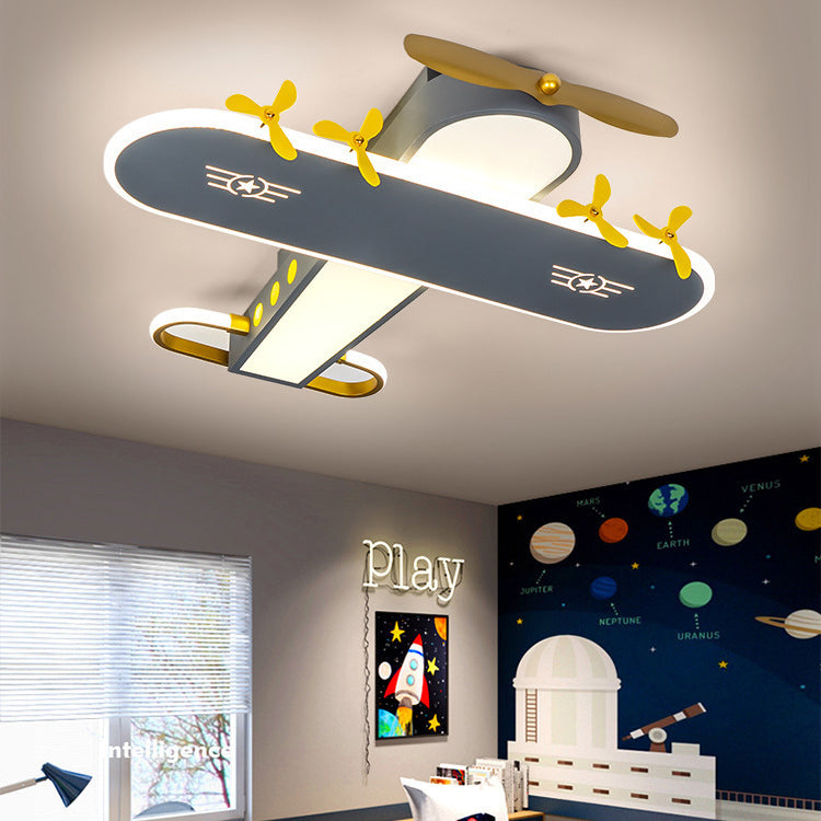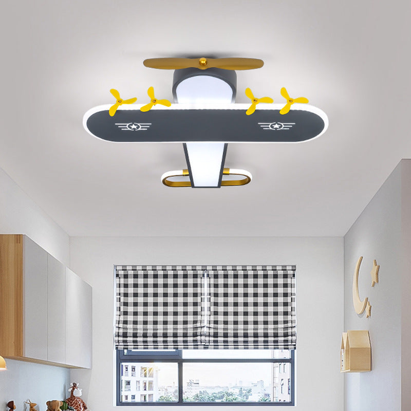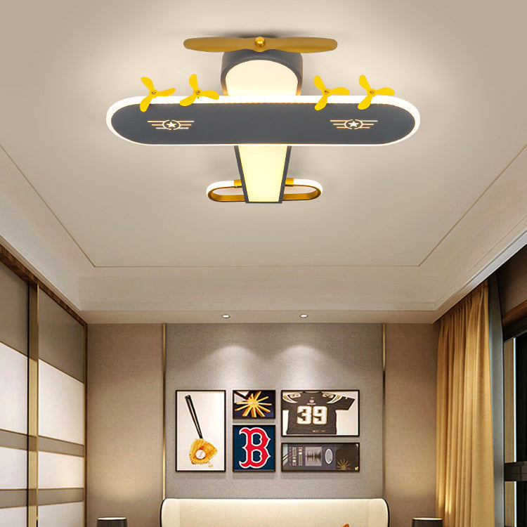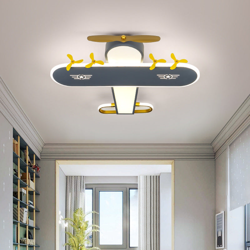 現代的でクリエイティブな子供用飛行機型アイアンLEDフラッシュマウントシーリングライト(寝室用)