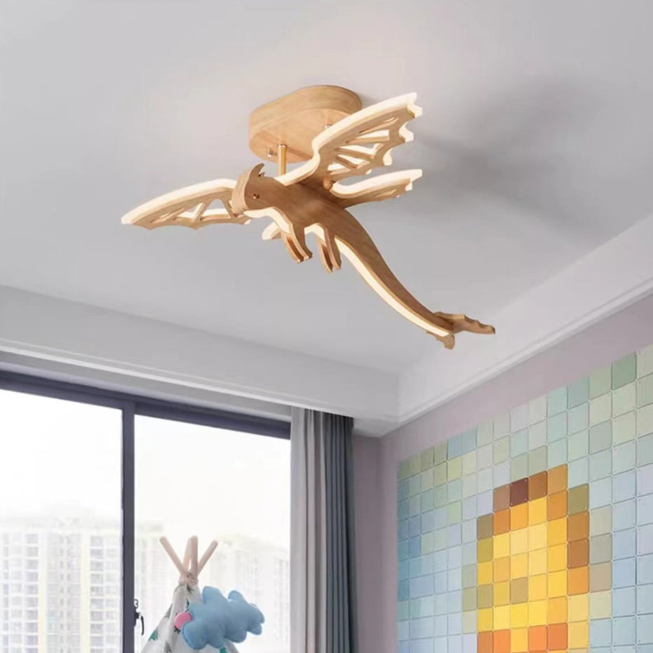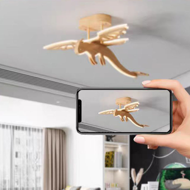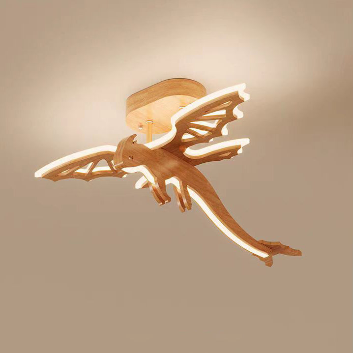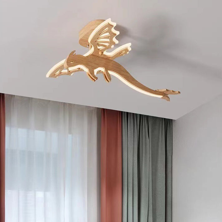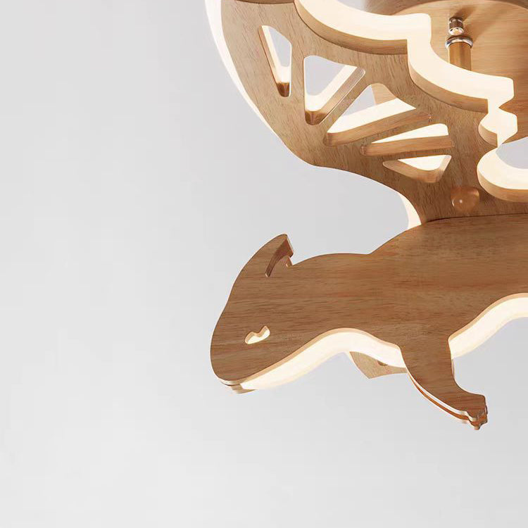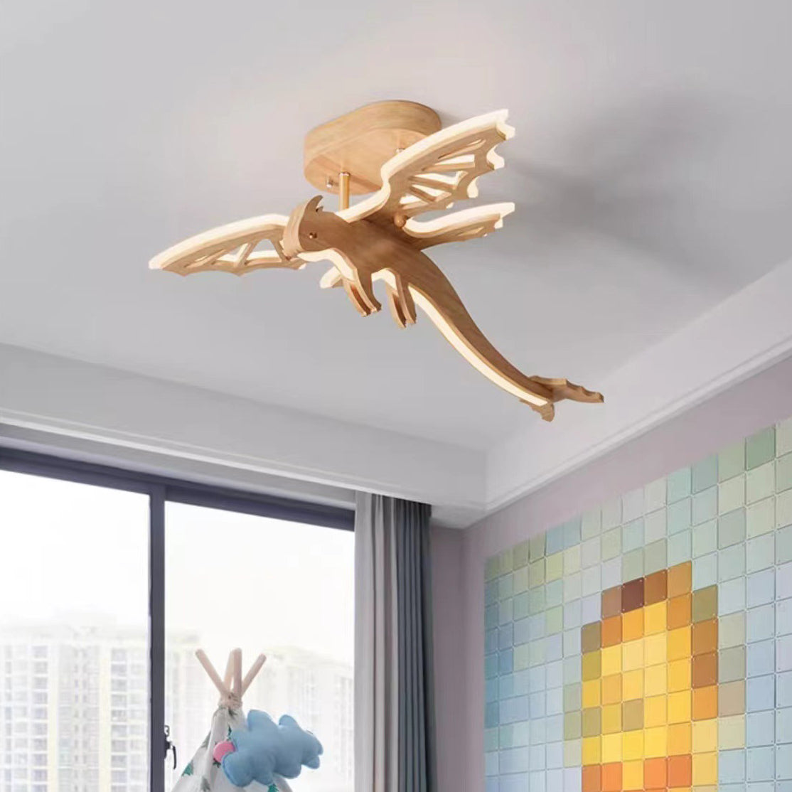 現代的でクリエイティブな子供用恐竜無垢材アイアンアクリルLEDセミフラッシュマウントシーリングライト寝室用
