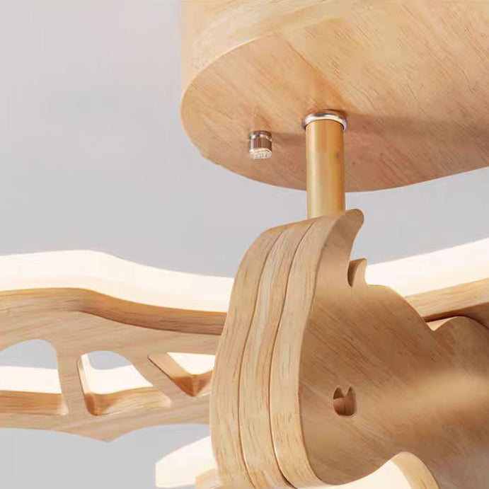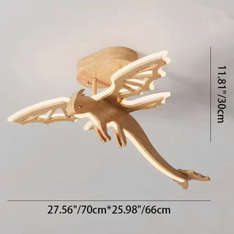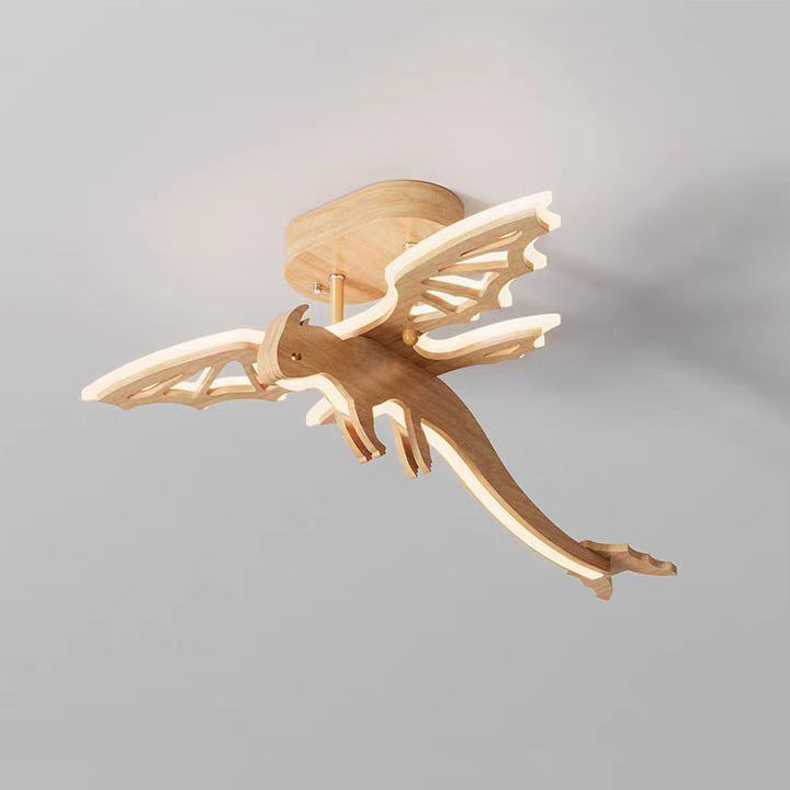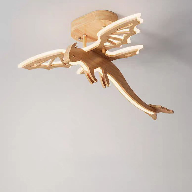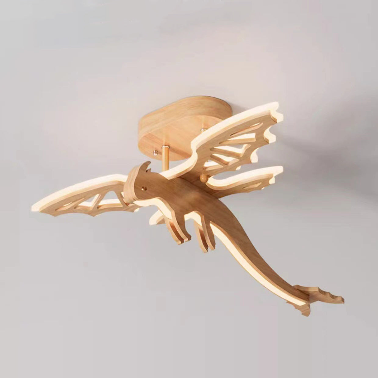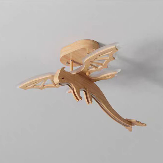 現代的でクリエイティブな子供用恐竜無垢材アイアンアクリルLEDセミフラッシュマウントシーリングライト寝室用