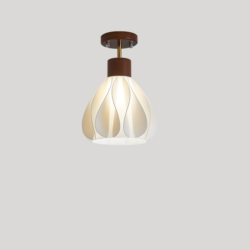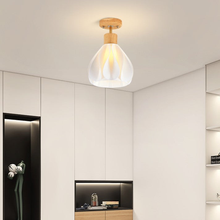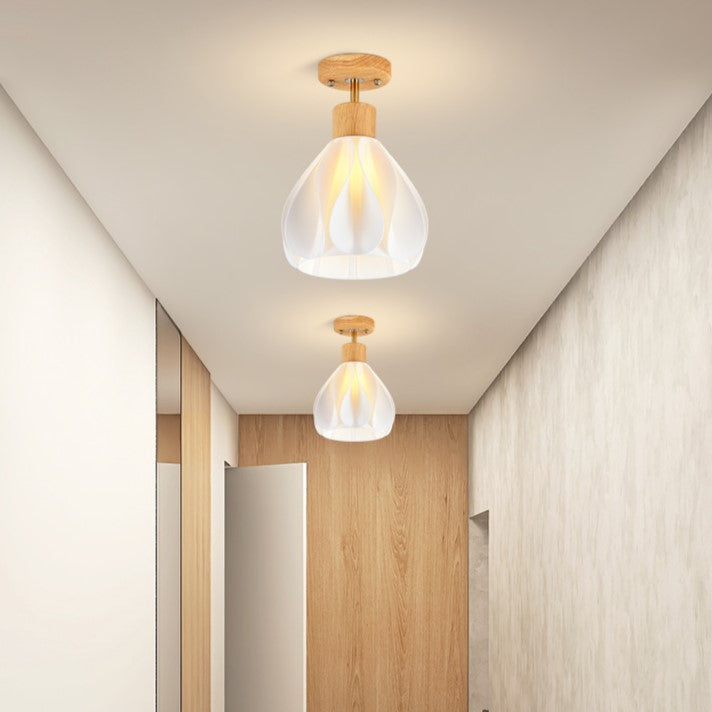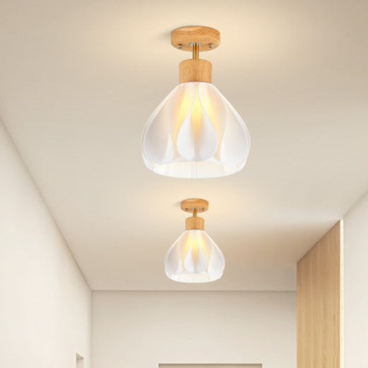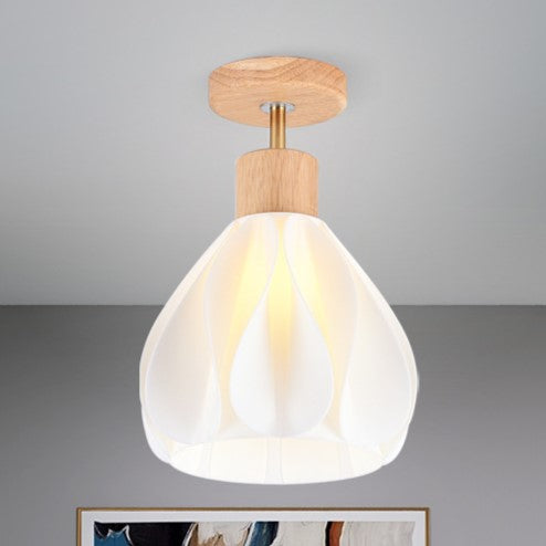 現代的でクリエイティブな丸い花びらの形をしたゴムの木の3Dプリントシェード、1灯セミフラッシュマウント天井照明(廊下用)