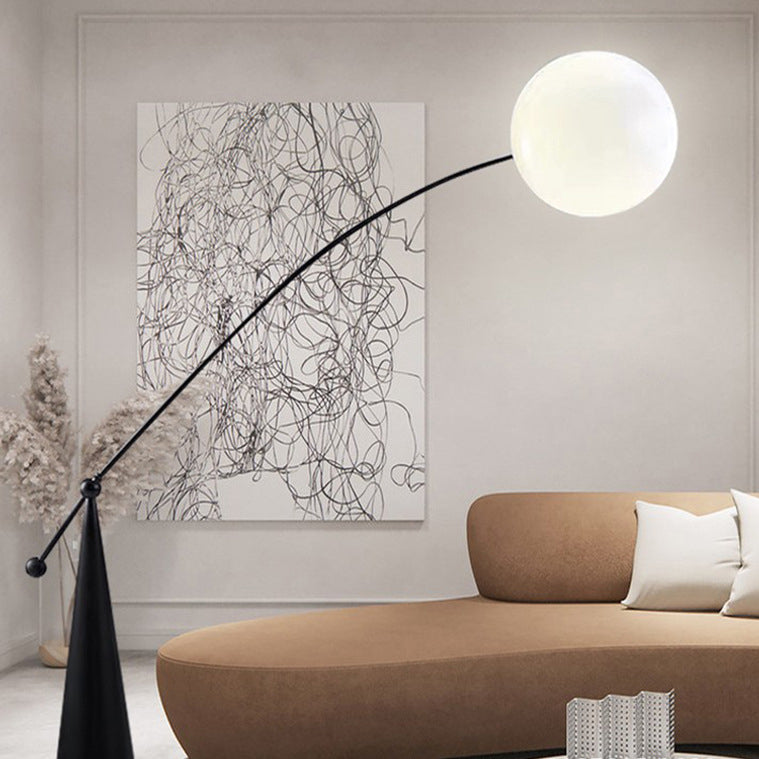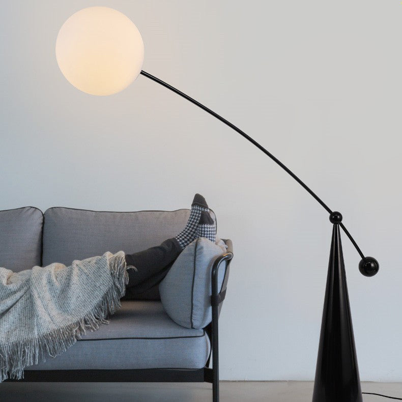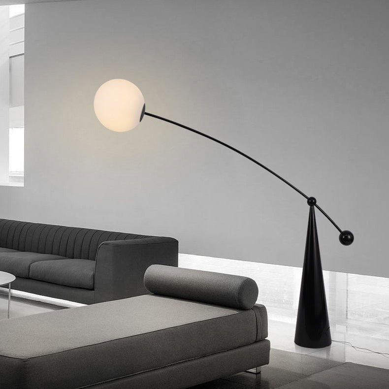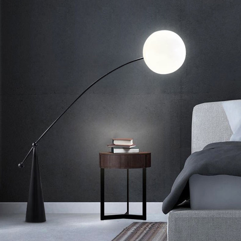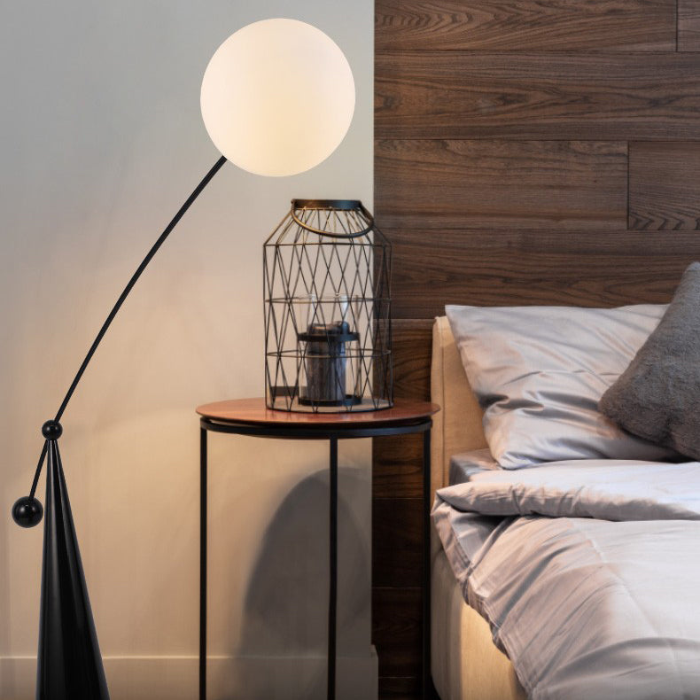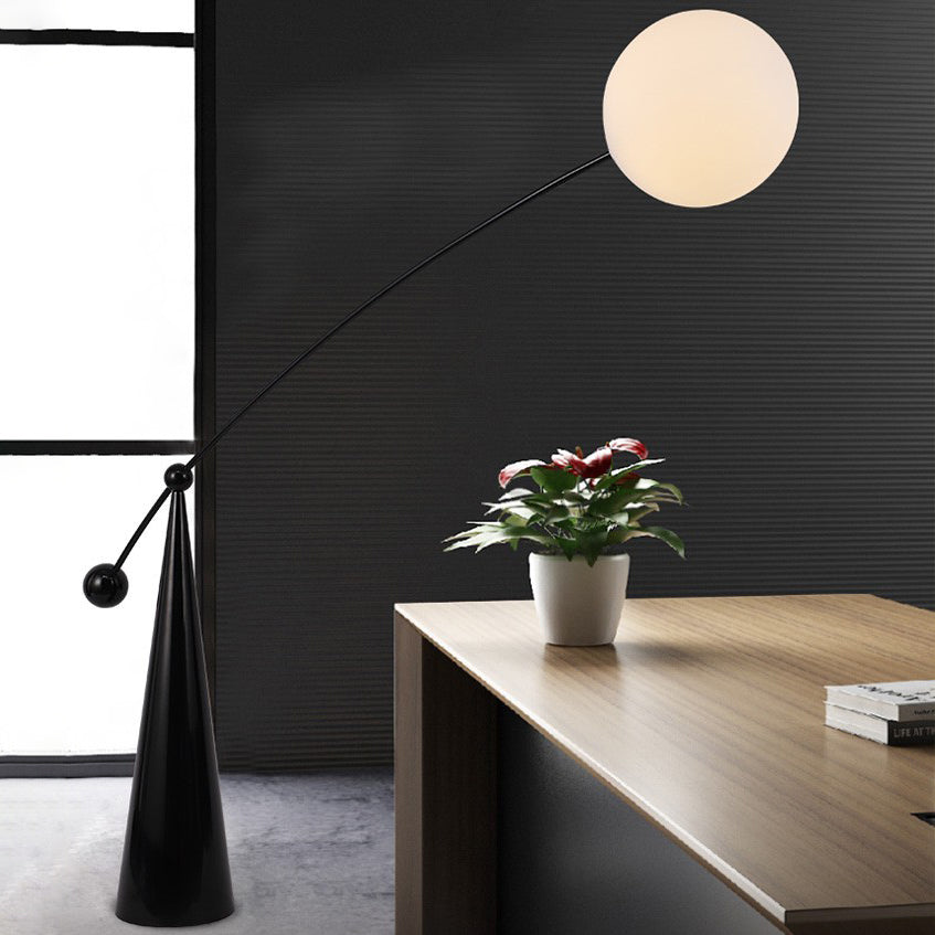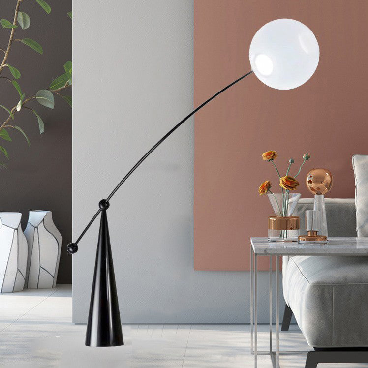 Contemporary Creative Tapered Base Fishing Rod Orb Iron Glass 1-Light Standing Floor Lamp For Living Room