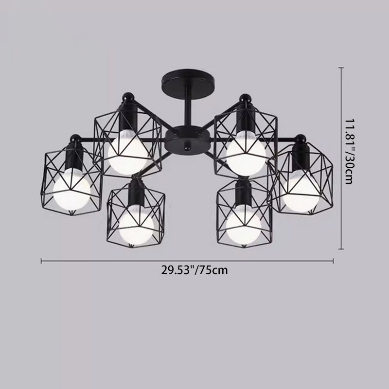 現代的な工業用六角形の鉄製3/5/6/8灯セミフラッシュマウント天井照明(リビングルーム用)