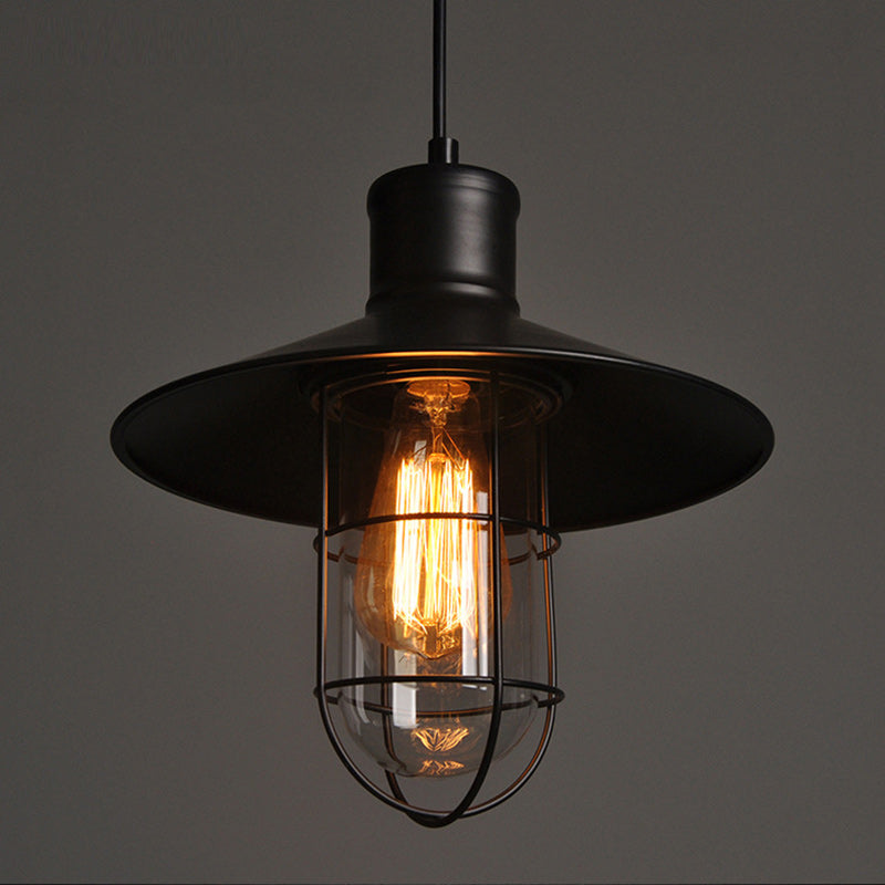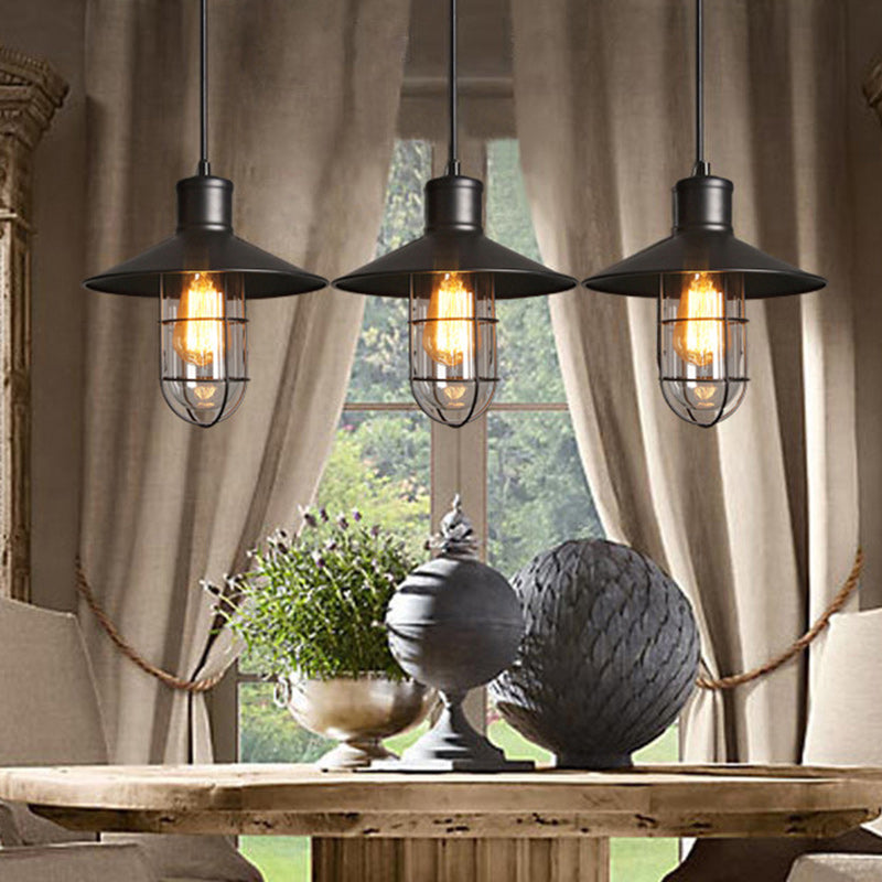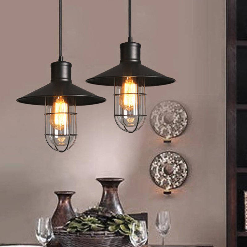 リビングルームに最適な、現代的なインダストリアルアイアンコーンケージ1灯ペンダントライト