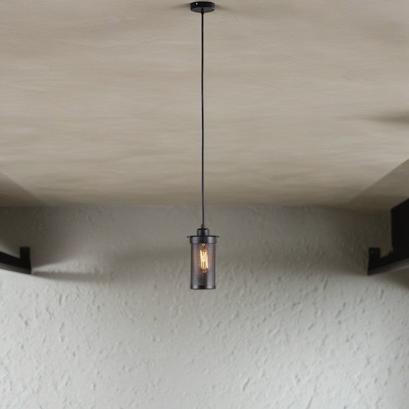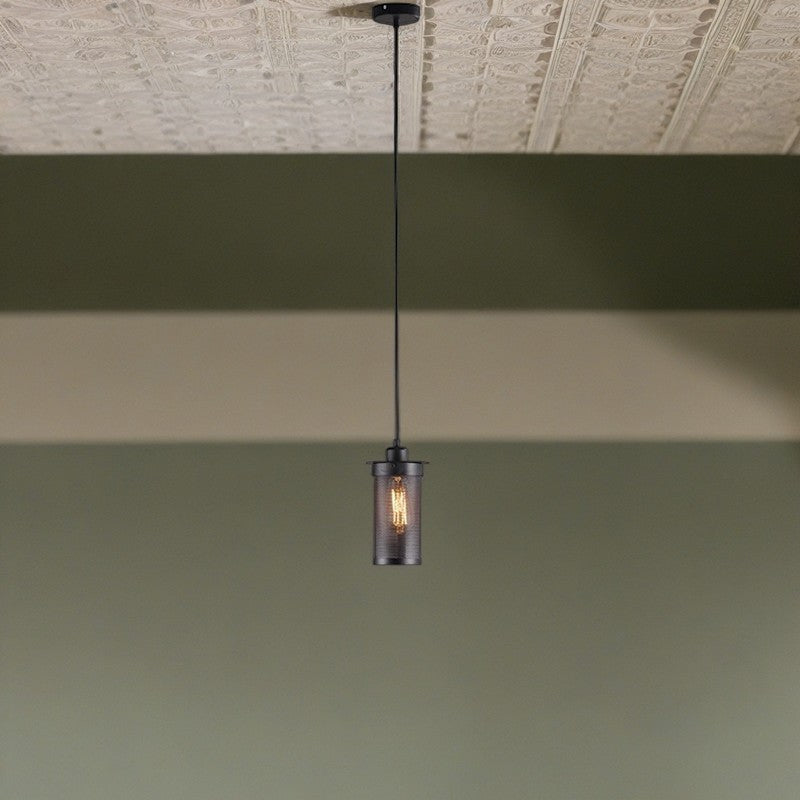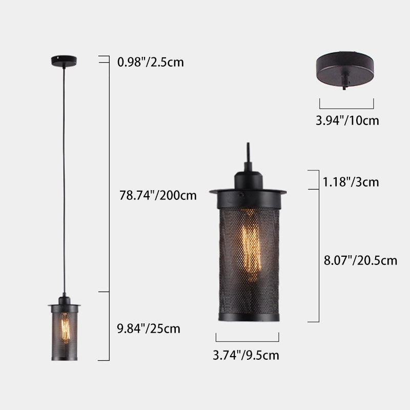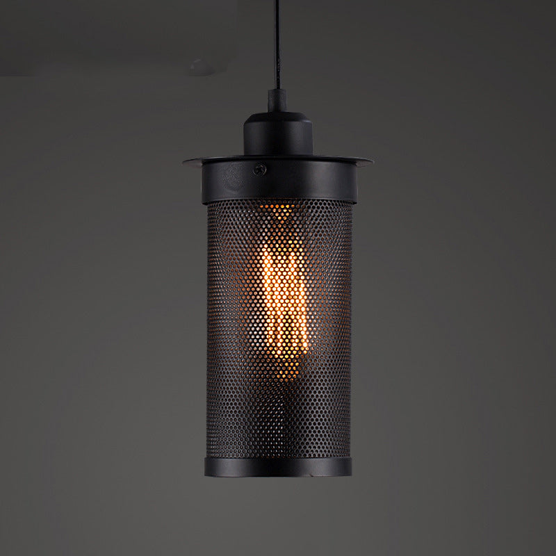 リビングルームに最適な、現代的なインダストリアルアイアンメッシュシリンダー1灯ペンダントライト