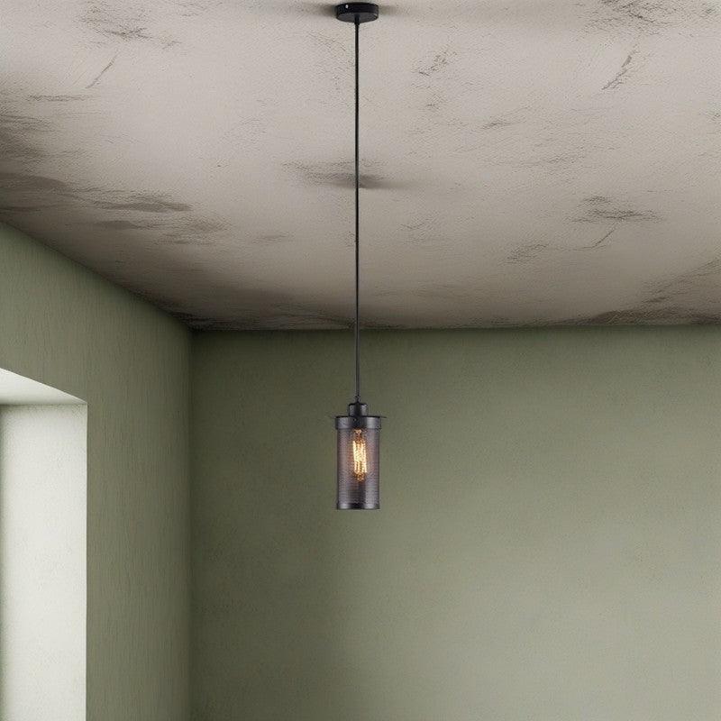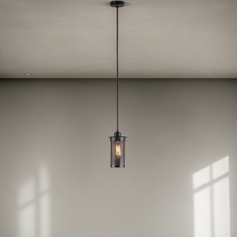調節可能な吊り下げコードを備えたこのペンダントライトは、リビングスペースにユニークなインダストリアルな雰囲気を添えます。鉄製のメッシュシリンダーデザインが、光と影の魅力的な遊びを演出します。