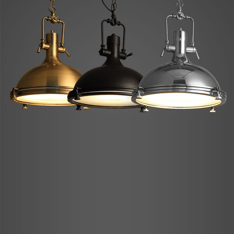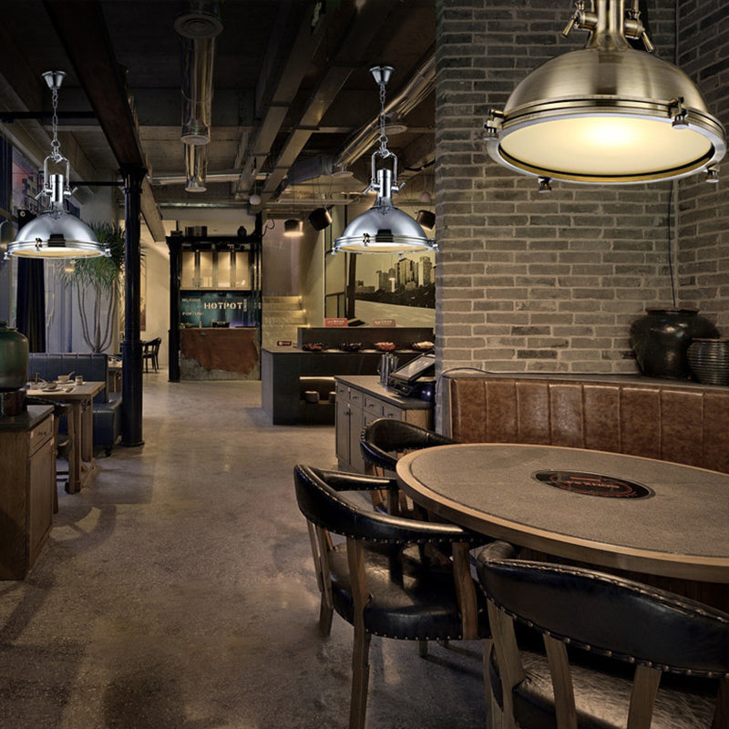 ダイニングルームに最適な、現代的なインダストリアルな鉄製ラウンド型1灯ペンダントライト