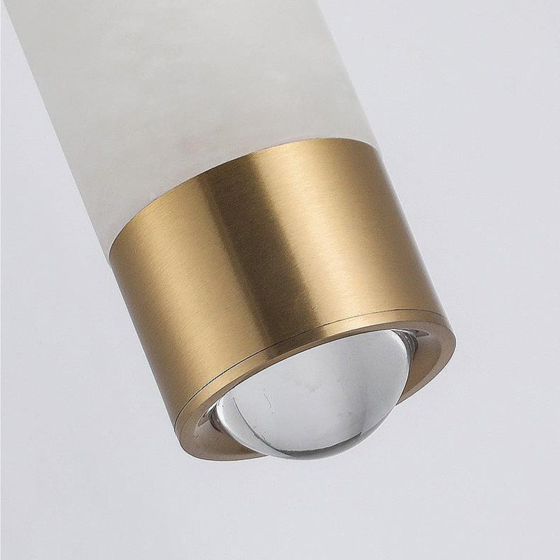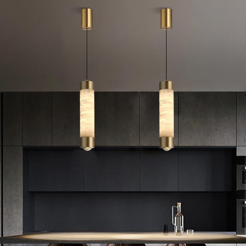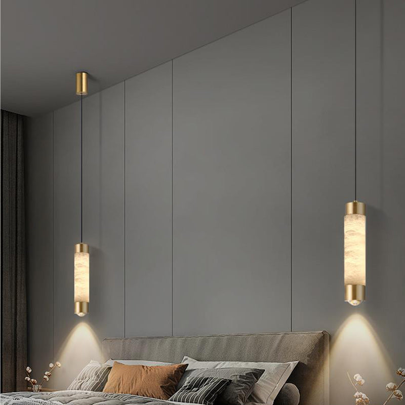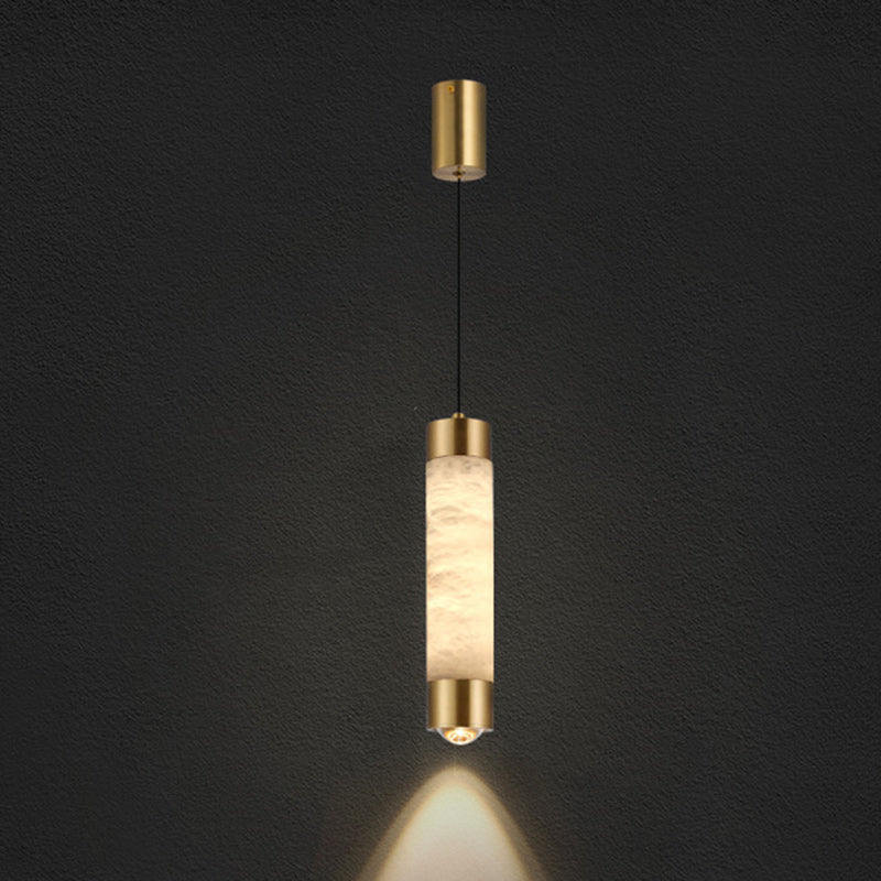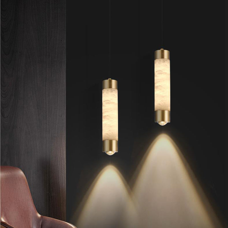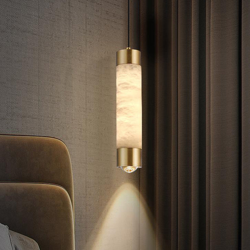 寝室に最適な、現代的な高級真鍮とアラバスター製のシリンダー型LEDペンダントライト