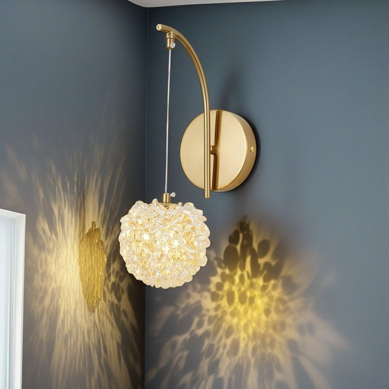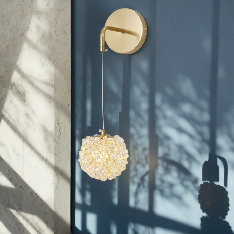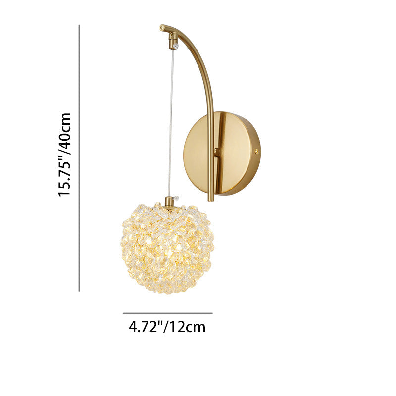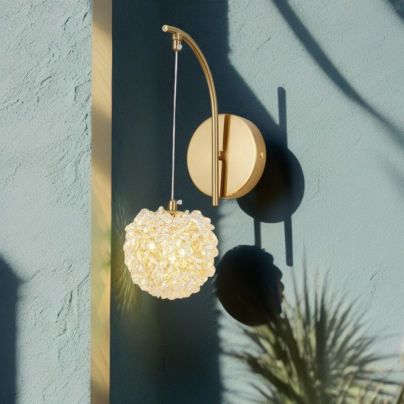 リビングルームに最適な、現代的な高級グローブ型アイアンクリスタル1灯壁取り付け用ランプ