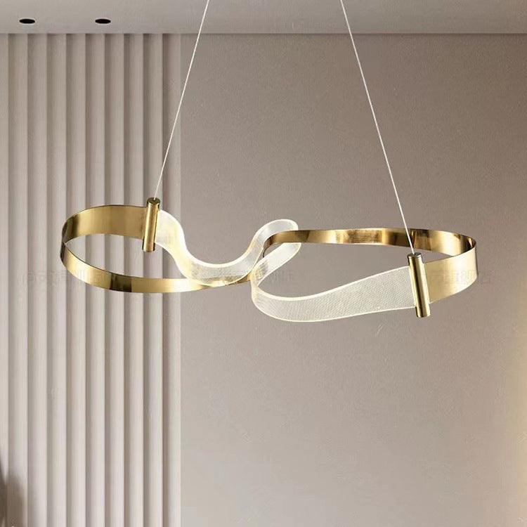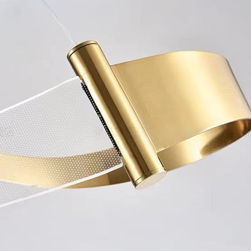 ダイニングルームに最適な、現代的な高級鉄製&アクリル製不規則なウェーブリングLEDアイランドライトシャンデリア