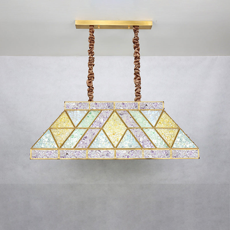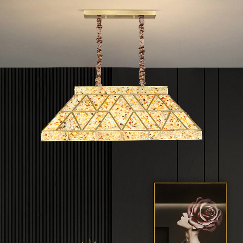 現代的な高級台形クラッシュフラワー長方形ベース銅クリスタル10/15ライトシャンデリアアイランドライトダイニングルーム用