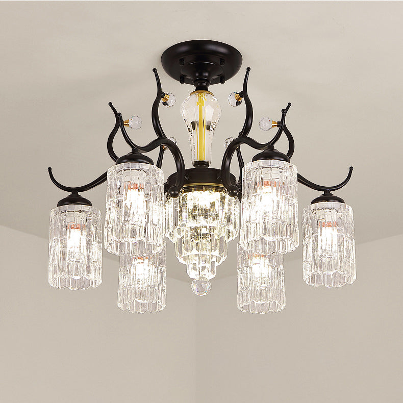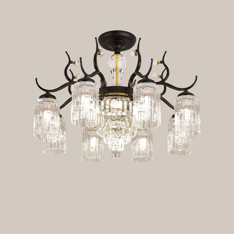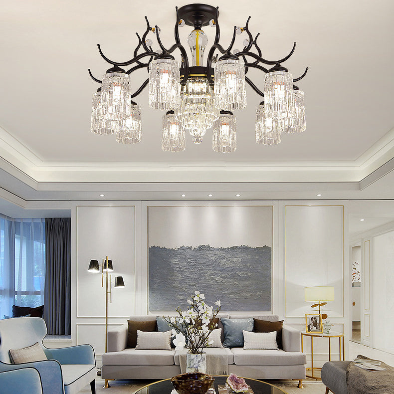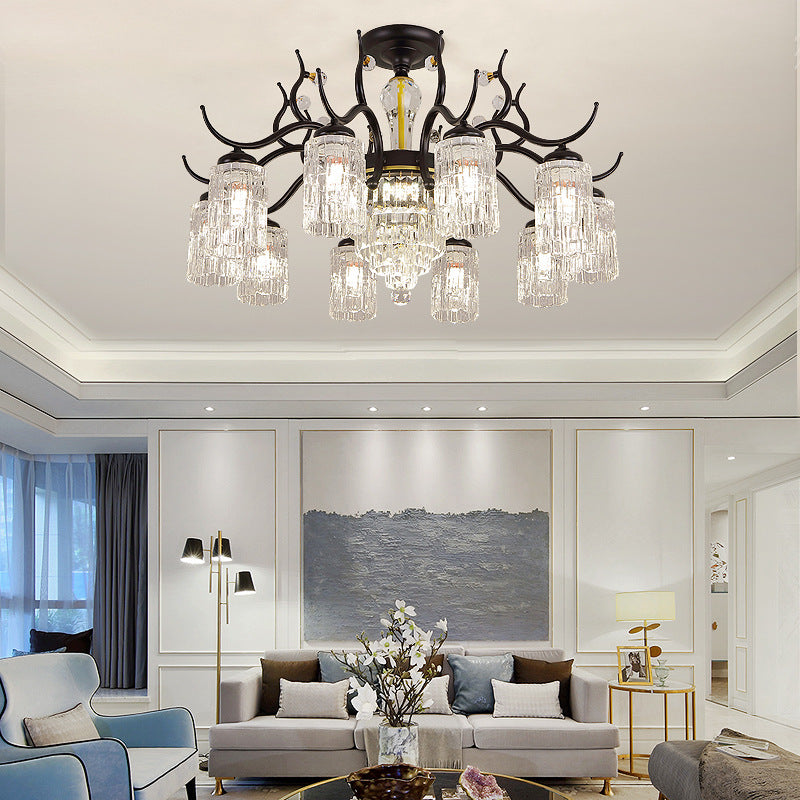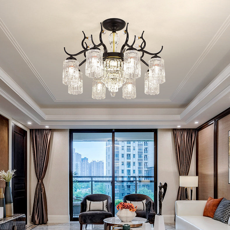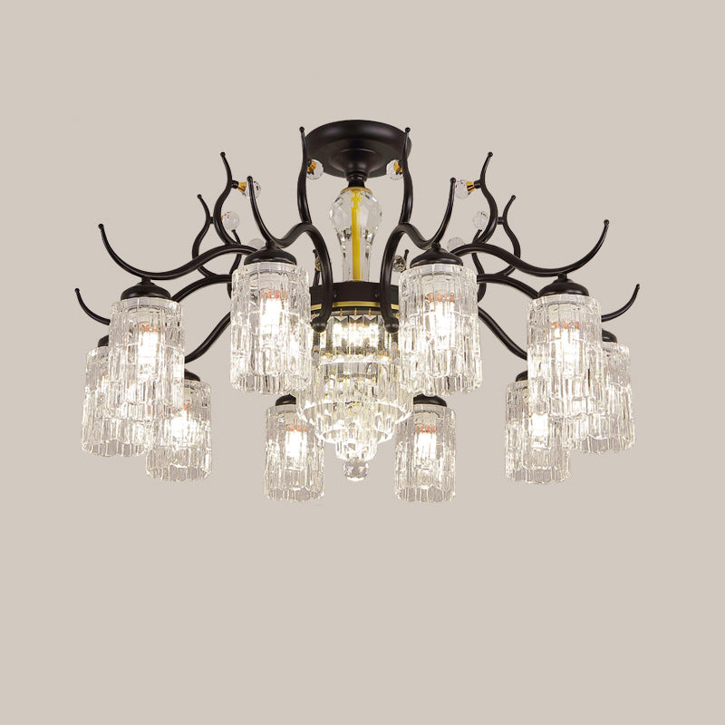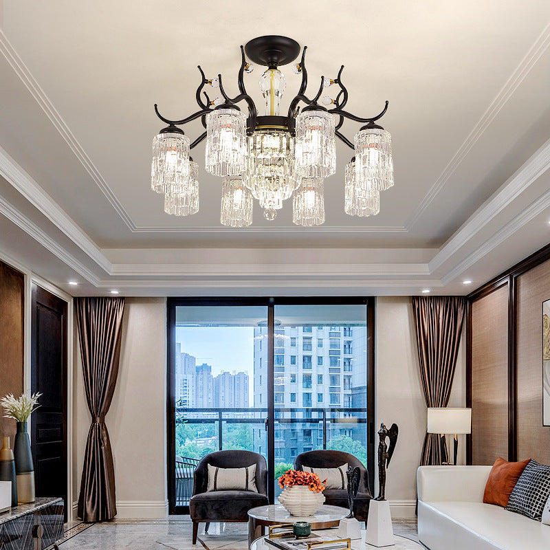 現代的な北欧ドームブランチカーブロッドシリンダーガラスランプシェードアイアンクリスタル3/6/8/10 - リビングルーム用ライトシャンデリア